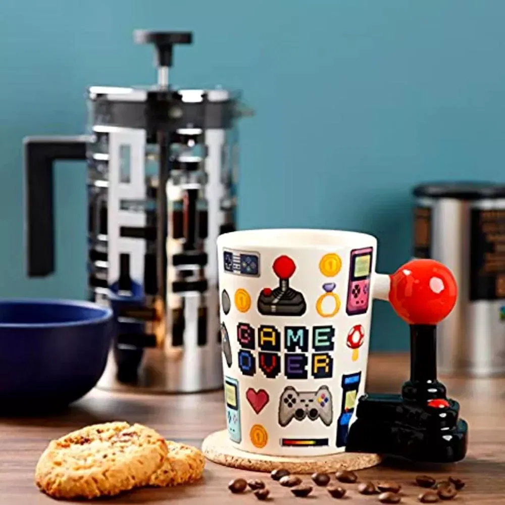Da start jocului pe papilele gustative insetate cu cana amuzanta cu joystick, Game Over! Umple-o cu bauturile preferate si serveste cu entuziasm fiecare inghititura in timp ce te trezesti, te relaxezi sau stabilesti noile strategii pentru un joc din care sa iesi invingator de aceasta data.