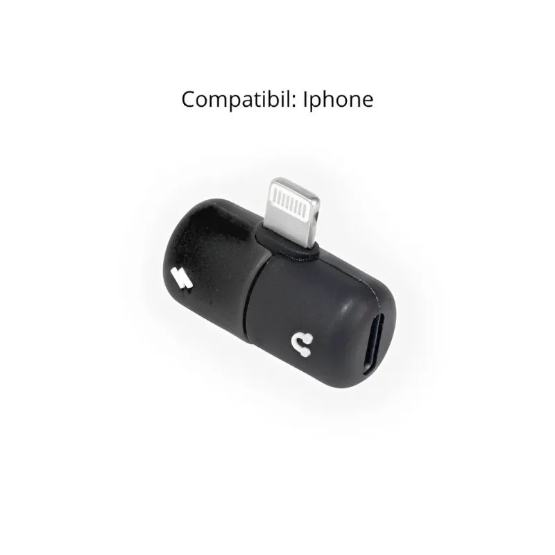 Conecteaza Dispozitivul de Incarcare si Redare Audio la portul telefonului tau. Apoi, conecteaza-ti castile si cablul de incarcare.