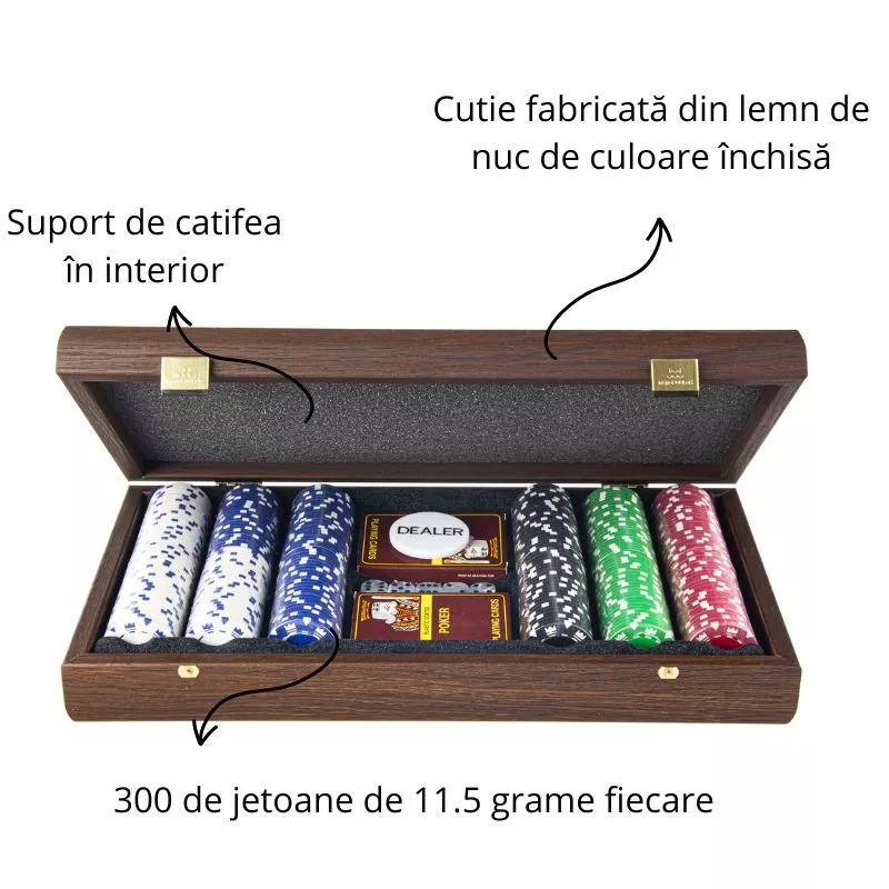 etoane de calitate si design autentic: Jetoanele incluse in set sunt fabricate cu atentie la detalii si au un design autentic, ceea ce contribuie la atmosfera autentica a unui cazinou. Fiecare jetoana este fabricata cu precizie si are o greutate adecvata, oferind o senzatie placuta la atingere si o experienta autentica de joc.