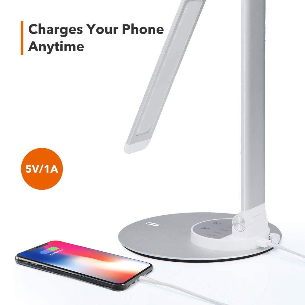 Lampa de birou cu LED TaoTronics TT-DL66 are port incarcare USB, cu 3 moduri de iluminare si 6 niveluri de luminozitate.