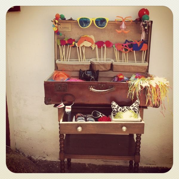Amplasați simplu și rapid photo booth-ul lângă zona cu dulciuri și fixați props-urile într-un recipient simpatic, umplut cu bomboane sau nisip colorat (la Ikea găsiți borcane sau ghiveciuri care mai de care). O să arate delicios și vor atrage atenția imediat!