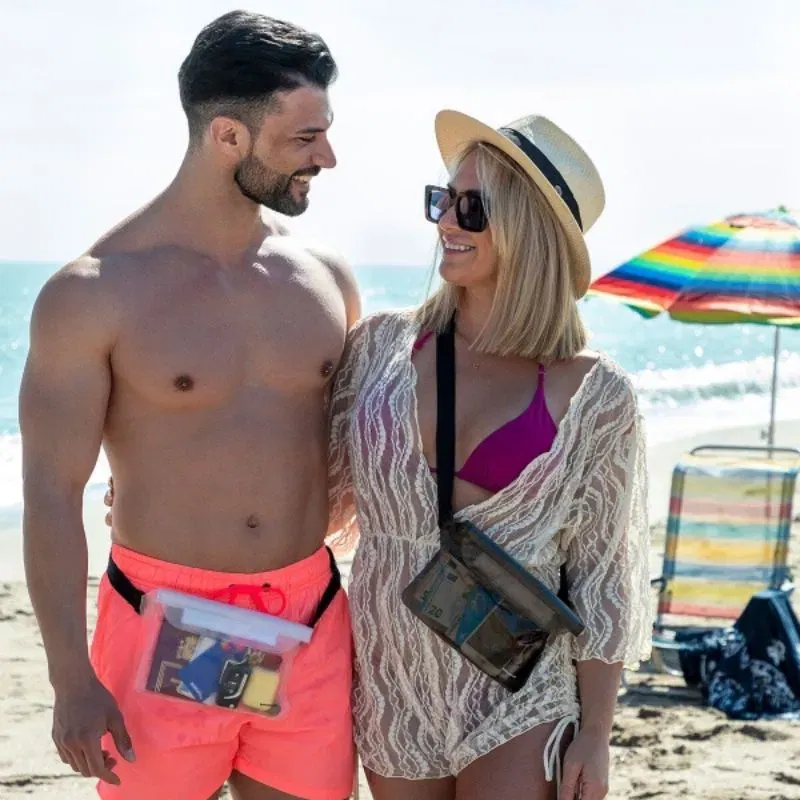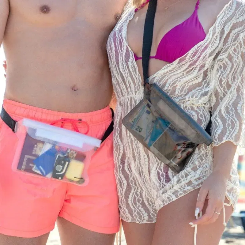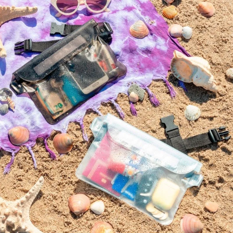 Setul include 2 genti impermeabile, fiecare cu inchidere tripla cu fermoar si velcro pentru siguranta maxima. Curelele reglabile (pana la 120 cm) asigura o prindere confortabila. Designul lor translucid permite vizualizarea usoara a continutului. Ideale pentru pastrarea in siguranta a obiectelor personale, rezistente la apa, murdarie si praf.