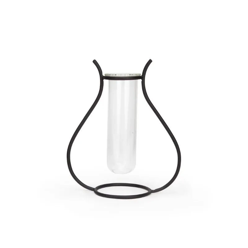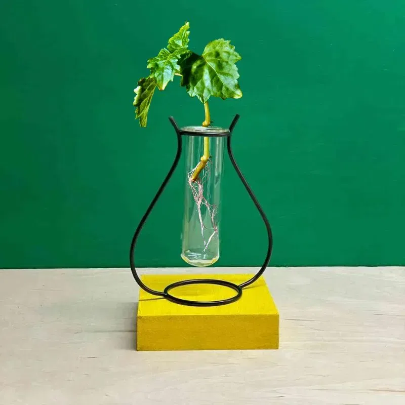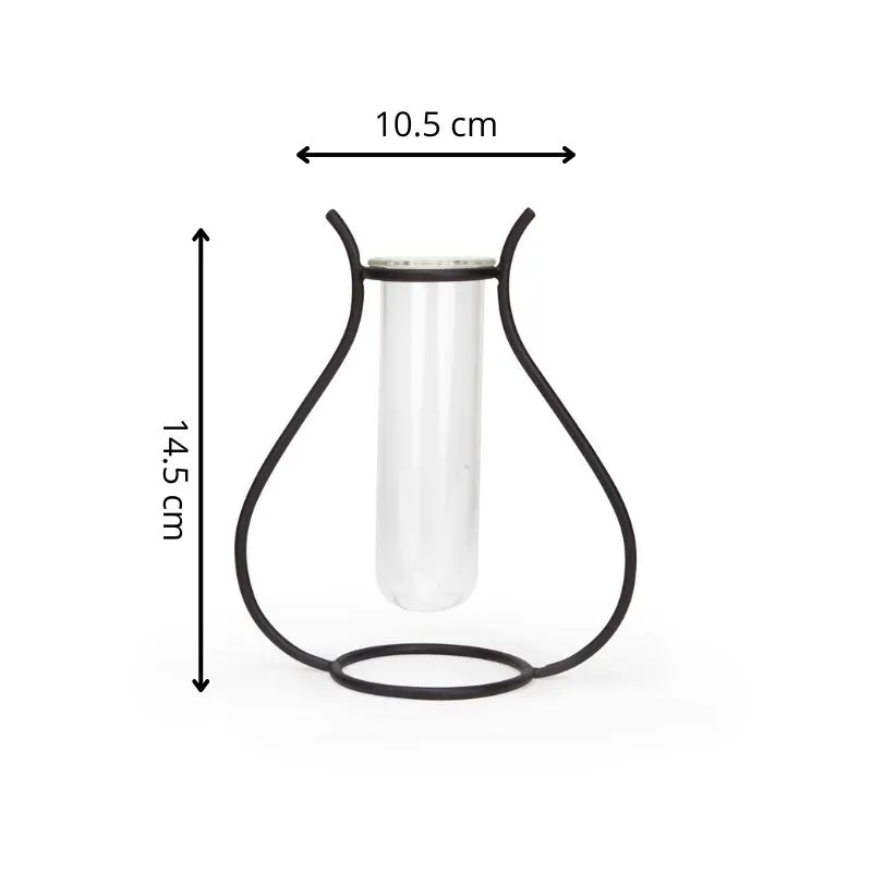 Vaza cu Suport Metalic, Zambetul Naturii este ideala pentru propagarea plantelor tale preferate, combinand functionalitatea cu estetica moderna. Fabricata din sticla de inalta calitate si suport de metal, aceasta vaza este perfecta pentru orice spatiu interior. Ofera o vizibilitate maxima radacinilor si adauga un aspect elegant biroului sau ferestrei tale.