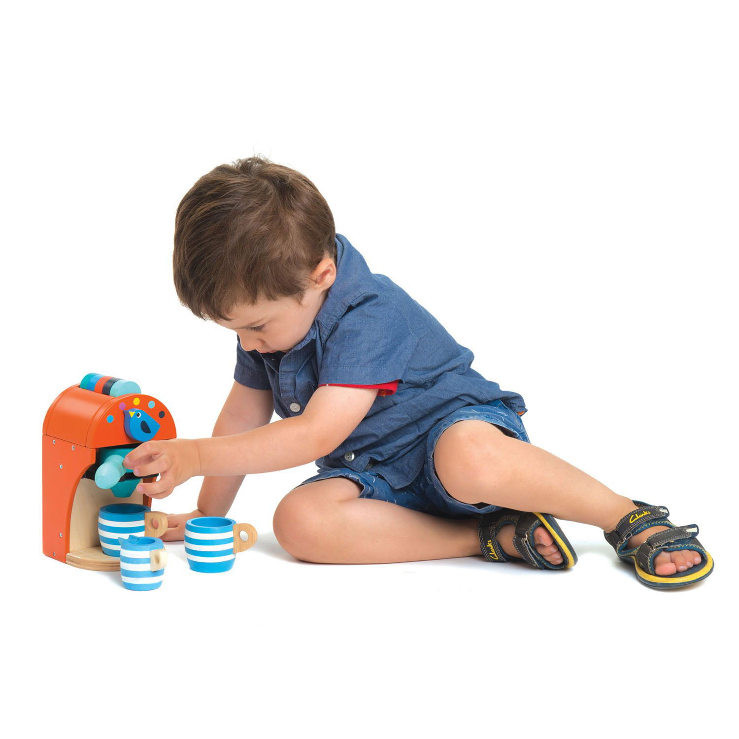 Aparat pentru espresso, din lemn premium - Espresso Machine - echipamente și accesorii complete pentru realizarea cafelei preferate. Aparatul pentru espresso stabilește un mediu de învățare bun pentru copilul tău, să vorbească, să interacționeze și să se joace cu tine și/sau cu membri familiei. Lasă imaginația copilului tău să se dezvoltate și privește-l cum devine barista și realizați împreună un cappuccino sau un latte! Situațiile din viața reală îi inspiră pe copii să gândească creativ în timpul copilăriei și îi determină să interacționeze mai ușor cu ceilalți, în același timp, construind încredere și prietenie. De asemenea, le consolidează limbajul, emoțiile și abilitățile motrice fine. Copiii vor învăța să gândească pas cu pas și să cultive bune obiceiuri organizaționale în timp ce îndeplinesc sarcini. Încurajează interacțiunea cu părinții și frații pentru a rezolva problemele și a-și îndeplini obiectivele.
