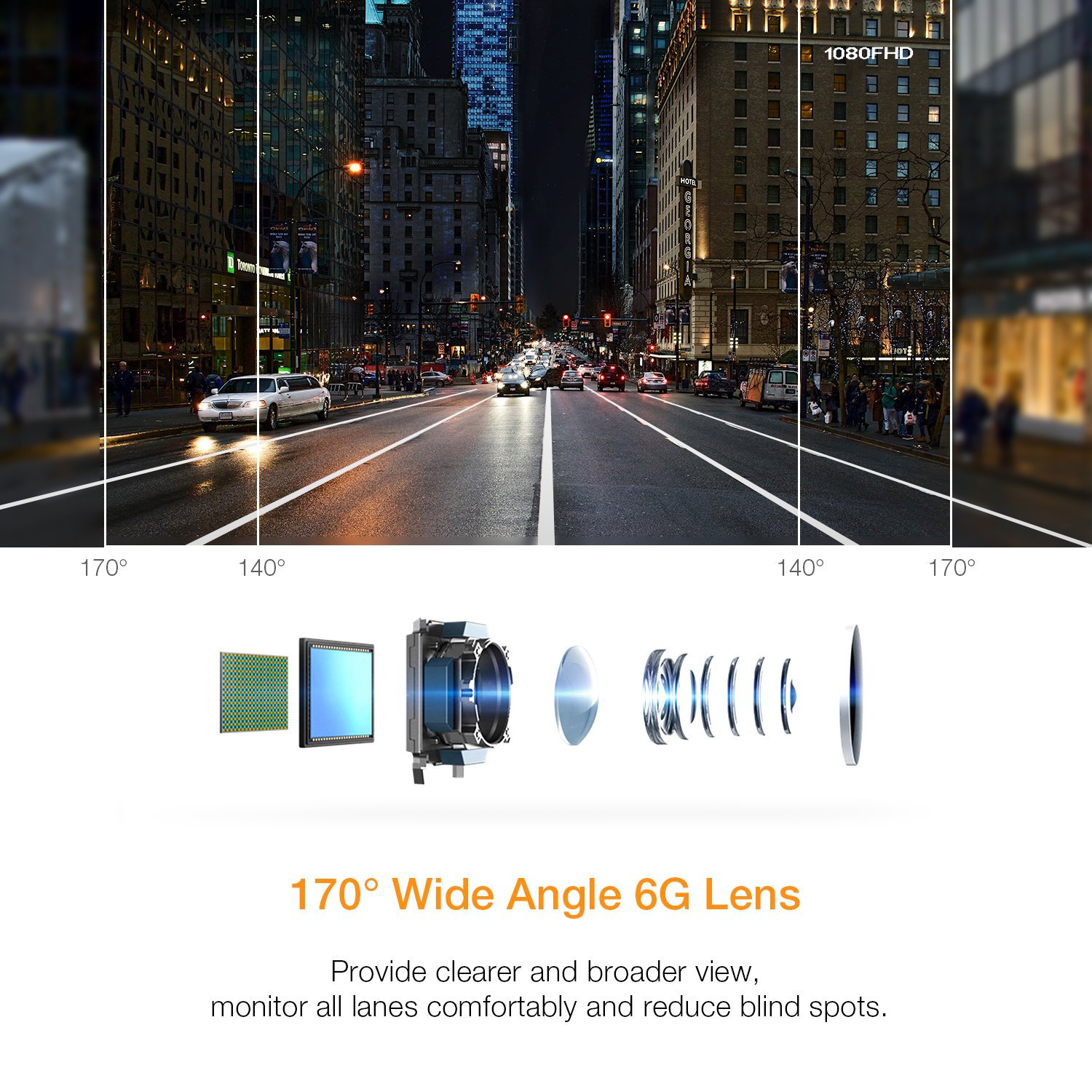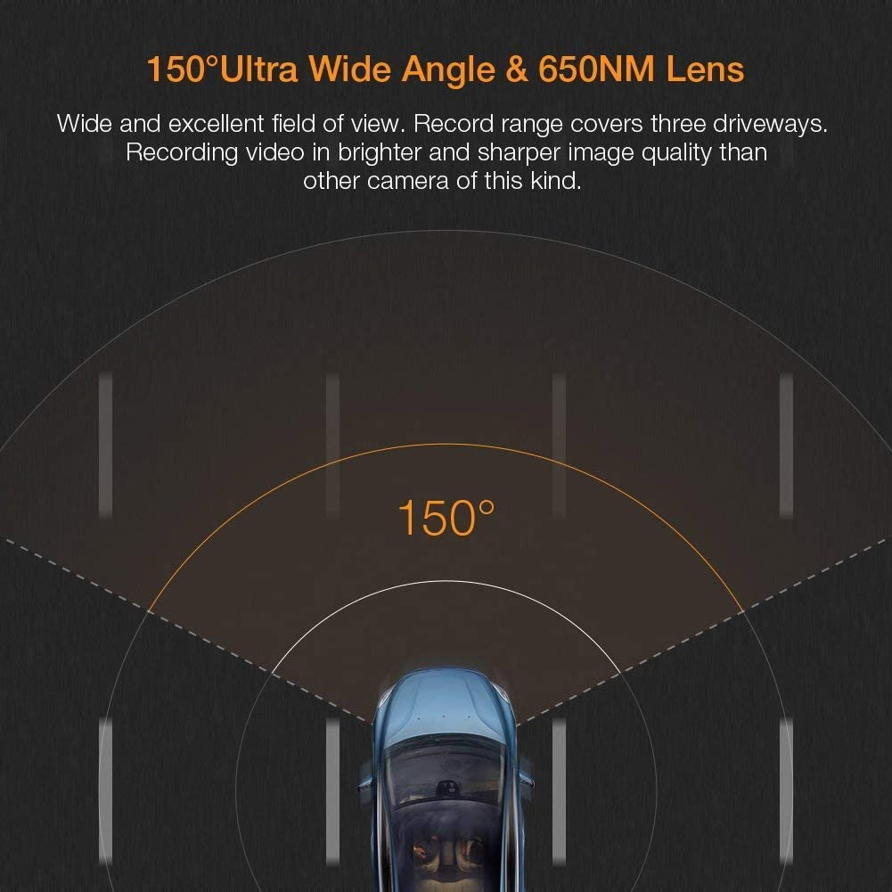 Super Night Vision: Inregistrarea 1080p Full HD cu 30fps si senzorul avansat asigura inregistrarea in timpul zilei si al noptii. Echipat cu o camera cu un unghi larg de 170 °, asigura inregistrarea tuturor participantilor la trafic aflati in fata masinii.