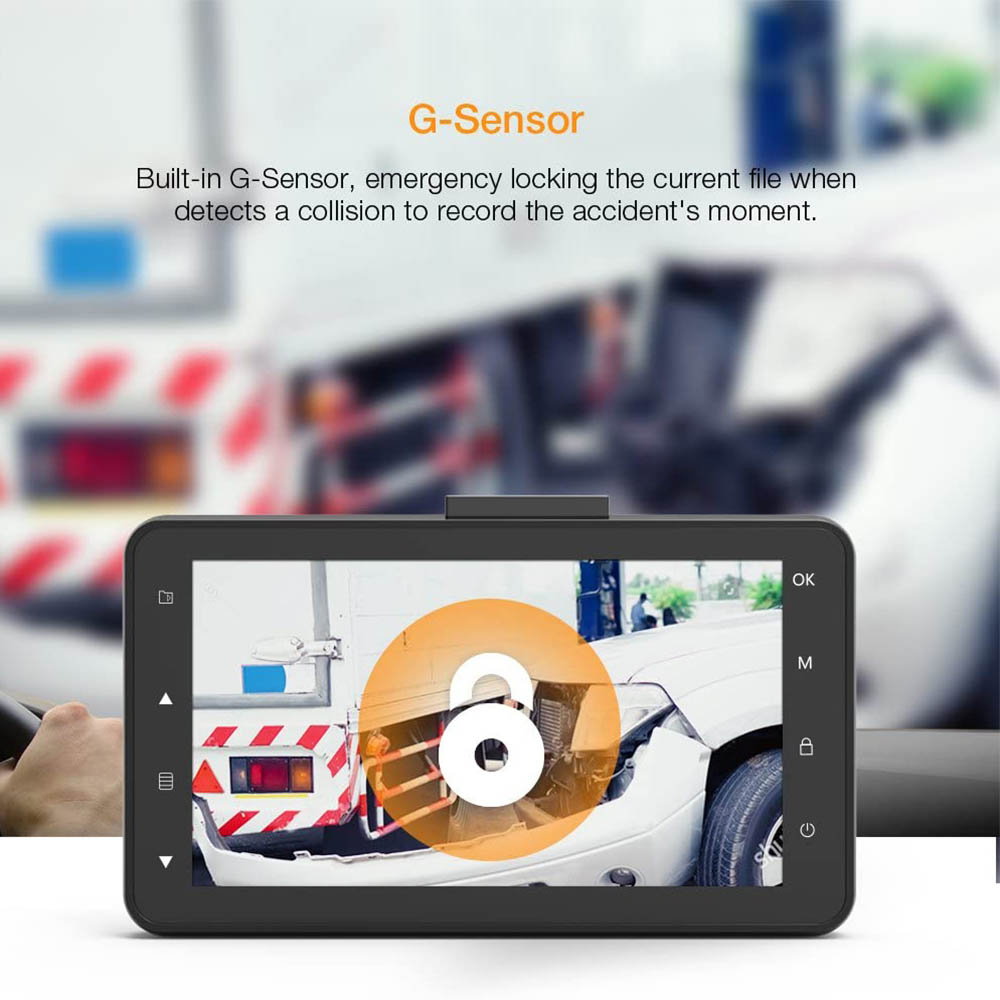 Inregistrare in bucla si G-senzor : Cand aceste doua functii sunt activate, camera de bord suprascrie cele mai vechi videoclipuri pentru a asigura inregistrarea continua. Atunci cand camera detecteaza acceleratie, franare brusca sau o situatie de urgenta va bloca videoclipul curent si il va impiedica sa fie suprascris.