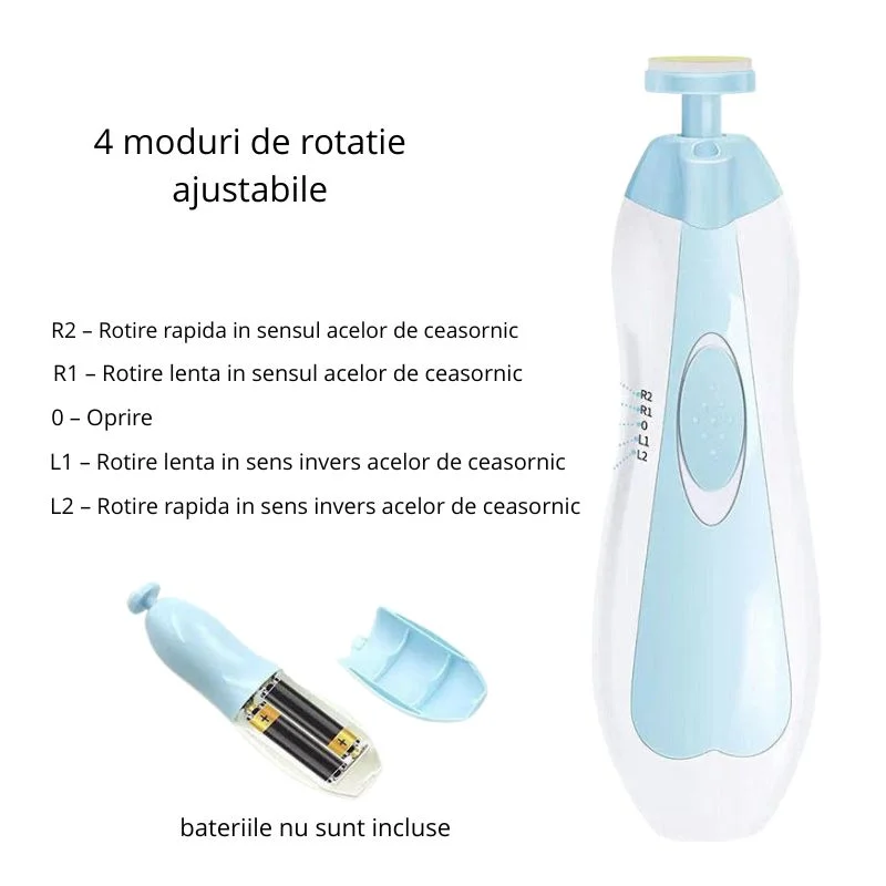Este o alegere ideala pentru ingrijirea completa a unghiilor copilului tau – fara plansete, fara riscuri si fara griji. Si da, poate fi folosit si de mama pentru o manichiura rapida intre doua biberoane!