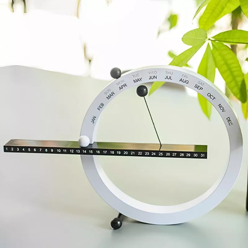 Cu forma circulara si structura geometrica, acest calendar nu este doar util, ci si o piesa de decor moderna. Se potriveste perfect pe birou, in living sau in spatiile de lucru creative. Designul sau simplu, dar captivant, atrage privirile oricui si adauga o nota de stil industrial oricarui interior.