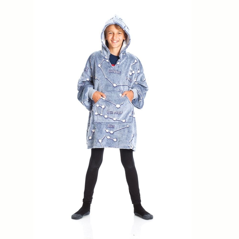 Un hanorac patura cu gluga pentru copii iti spune o poveste de fiecare data. Trebuie doar sa stii cum sa il atragi pe cel mic in ea si impreuna veti reusi sa faceti o multime de activitati. Noi te asiguram ca este cadoul ideal de Craciun, pentru ziua lui de nastere sau ziua numelui, cadou pentru rezultate deosebite, de Mos Nicolae si multe alte ocazii insemnate.