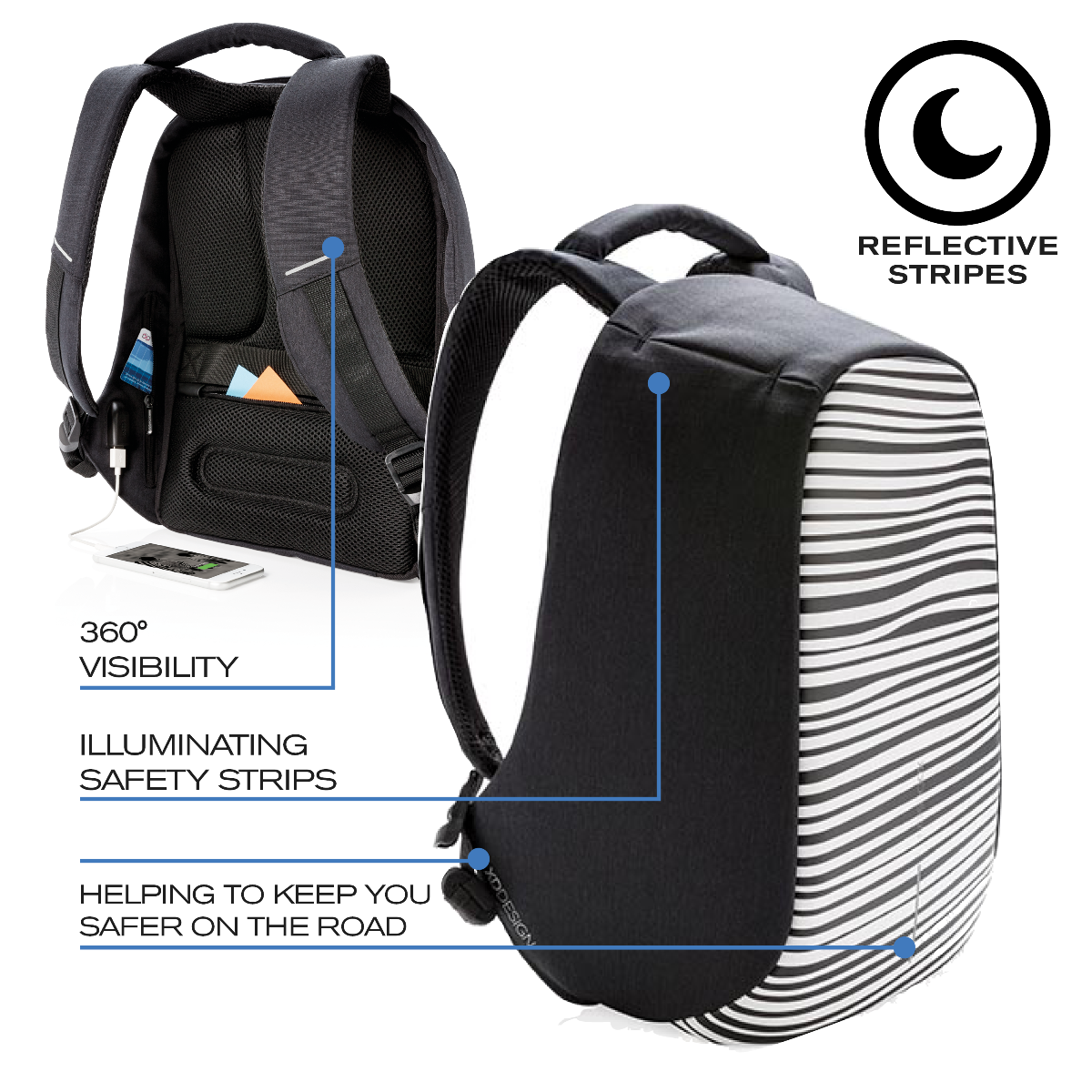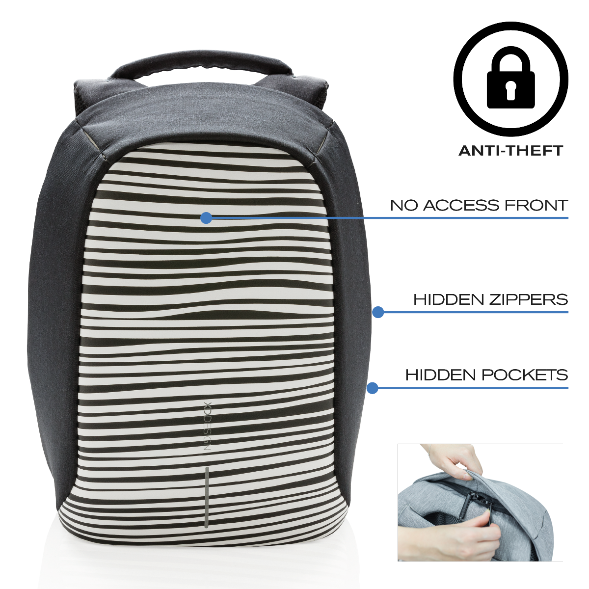 Zebra Bobby Rucsac antifurt a fost proiectat cu o idee foarte clara: de a permite nomazilor moderni sa se simta in siguranta, sa ramana conectati, sa fie bine organizati si sa se deplaseze intr-un mod responsabil. Toate astea fa ca Zebra Bobby sa fie diferit de ghiozdanele pe care le-ai purtat pana acum. Saluta noua initiativa de a-ti transporta lucrurile si gadgeturile intr-un rucsac antifurt, care ii tine pe hoti la distanta si cara iti permite mai multa flexibilitate cand esti on the go.