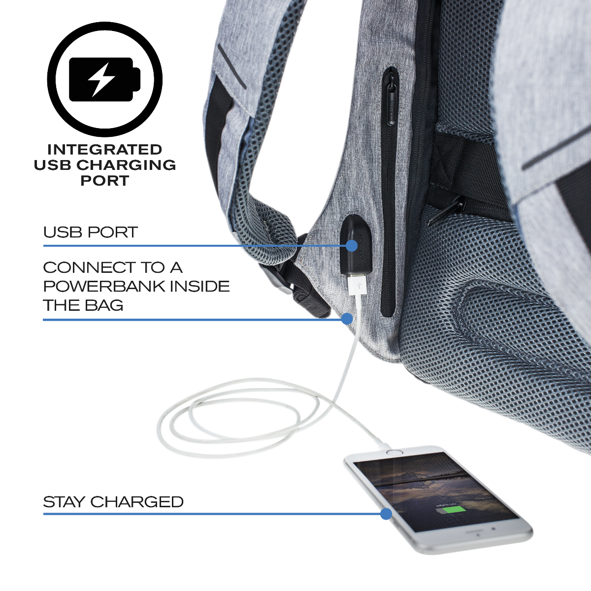 "Siguranta" este numele mai mic al rucsacului Bobby si vei intelege imediat de ce. El este diferit prin designul inovator: buzunarele si fermoarele sunt ascunse privirilor curioase. Materialul este rezistent la taieturi, la ploaie, lichide si chiar la impact. Dincolo de a-ti oferi siguranta lucrurilor personale bine protejate, Zebra Bobby Rucsac antifurt include un port pentru cablul USB. Ce faci cu el? Simplu. Daca ti se intampla sa ramai fara baterie la telefon, o poti incarca usor cu acest charger integrat. Cool, nu?