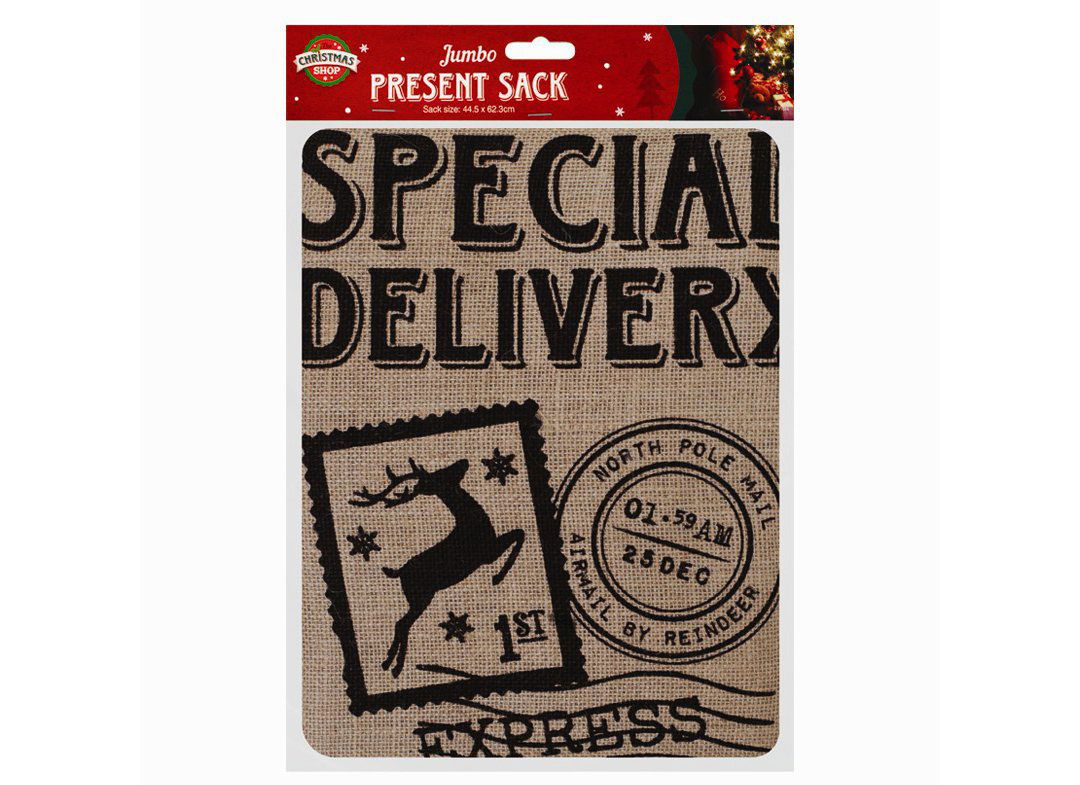 Specialele cadouri de Craciun care vin toooocmai de la Polul Nord vor fi in siguranta in acest sac cadouri Craciun Mare, facut din iuta si captusit in partea din spate. Sistemul de inchidere presupune un snur rosu din poliester cu care sa tii surprizele la un loc. Este loc de unul sau mai multe cadouri dragute, caci sacul masoara 62 centimetri inaltime si 44 centimetri latime; poti alege din doua mesaje frumos scrise pe partea din fata - ambele vor starni curiozitatea si vor aduce zambete.