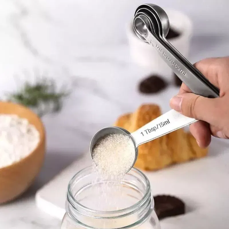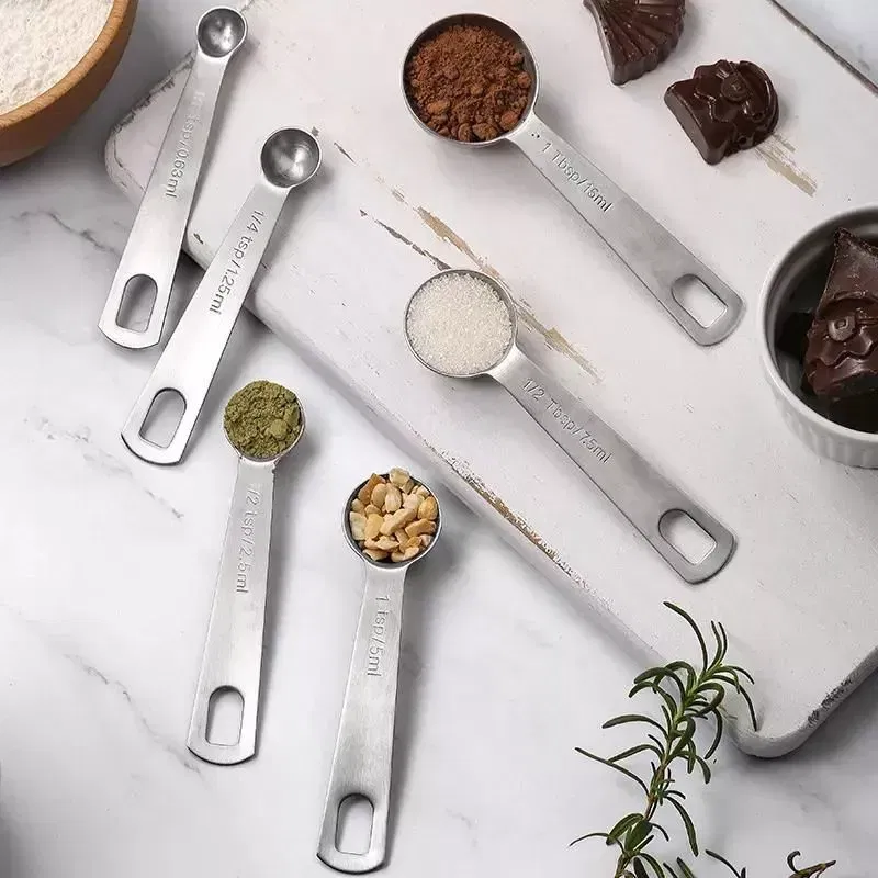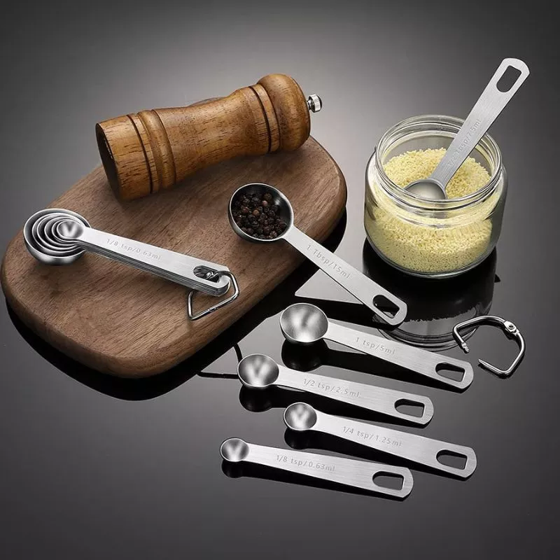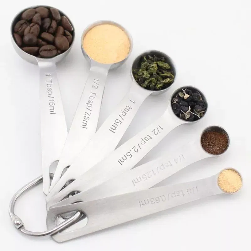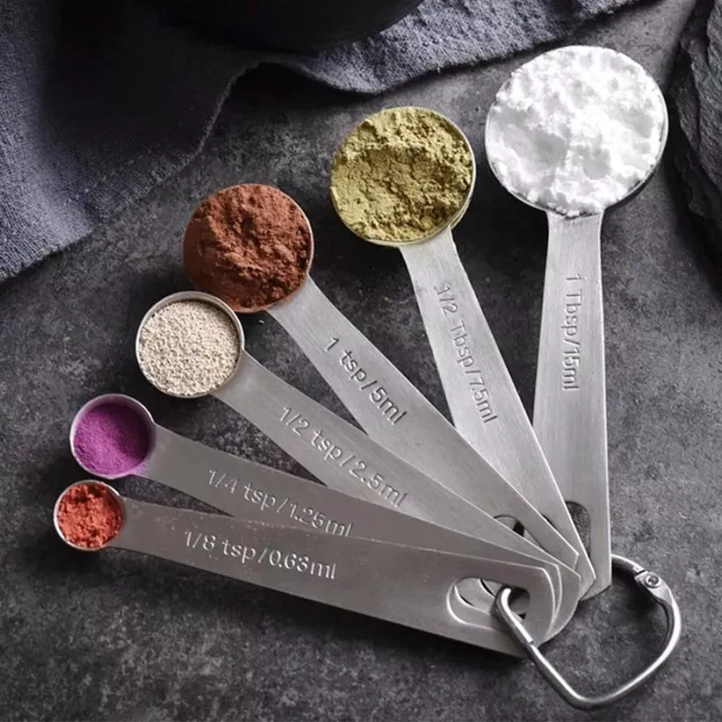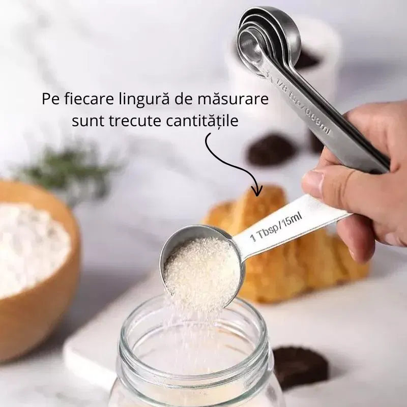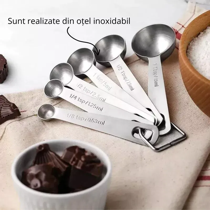• Setul include 6 linguri de masurare cu urmatoarele cantitati: 15 ml, 7,5 ml, 5,0 ml, 2,5 ml, 1,25 ml, 0,63 ml