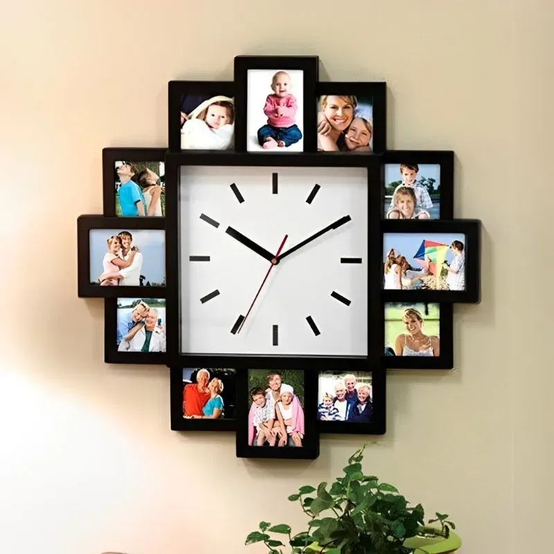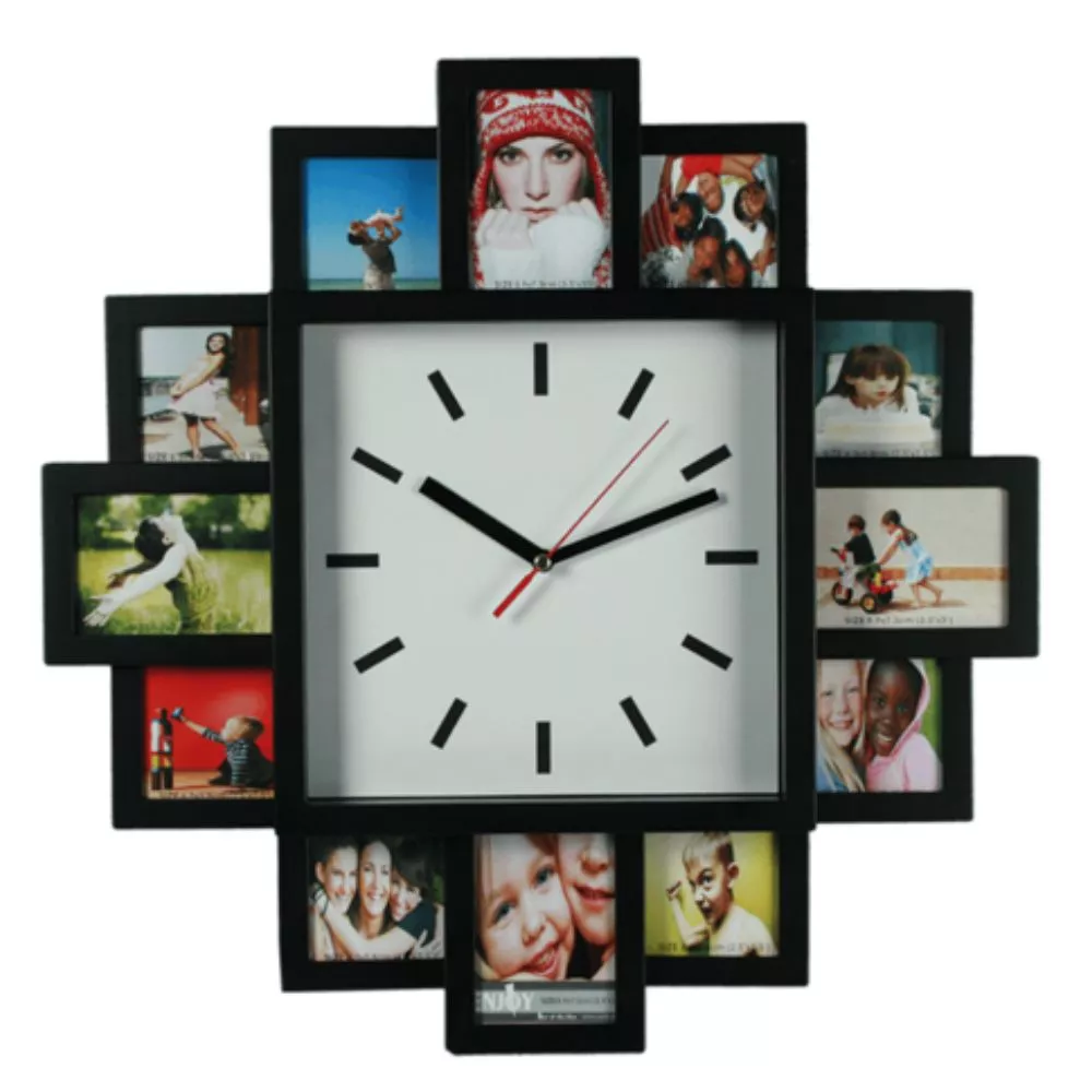 O galerie de amintiri intr-un mod inovator? Suna de-a dreptul ingenios, nu-i asa? Poti alege sa personalizezi ceasul cu fotografii ale familiei, prietenilor sau animalelor de companie sau poti sa îi dai un aspect mai artistic, afisand fotografii realizate de tine sau de artistii tai preferati. Nu te limita doar la locuinta ta! Ofera tuturor celor dragi un ceas de perete cu 12 rame foto si vei vedea ce insemnatate va avea pentru acestia. Cu acest ceas, poti sa-ti adaugi propriul stil si sa creezi un punct focal interesant in orice incapere.