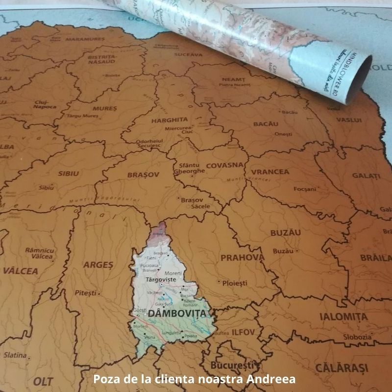 Pot sa spun doar ca este minunata. Am mai vazut o harta razuibila a Romaniei similara dar cu o calitate slaba. Aceasta de la voi are foita de razuit fina, permite descoperirea mai multor detalii si este imprimanta pe o hartie mai grosuta, rezistenta. Am putut sa o inramam foarte usor si deja am personalizat-o. Multumim si pentru livrarea prompta. 10+++