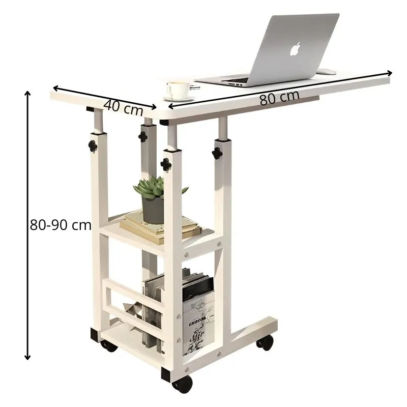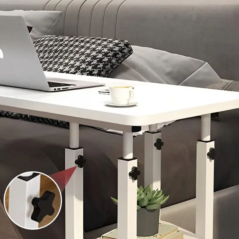 Utilizare: Aceasta masa ajustabila este extrem de usor de utilizat si personalizat. Datorita celor doua butoane de blocare pe fiecare parte, inaltimea mesei poate fi ajustata rapid si simplu intre 80 si 90 cm pentru a se potrivi perfect nevoilor tale. Este ideala pentru utilizarea ca birou, masa de studiu, masa de laptop sau chiar ca suport pentru gustari in fata televizorului. Cele patru roti permit deplasarea usoara a mesei intre camere, iar sistemul de blocare garanteaza stabilitatea si siguranta in utilizare.