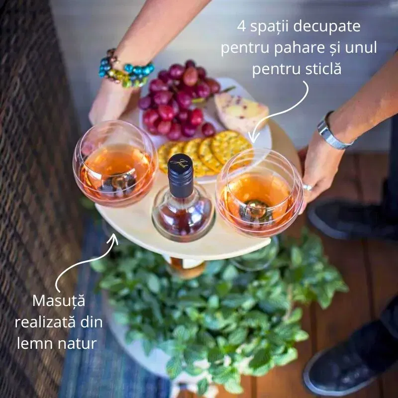 Acest cadou femei si cadou barbati are o caracteristica speciala: este prevazut cu spatii pentru o sticla si patru pahare, astfel incat sa nu se verse.