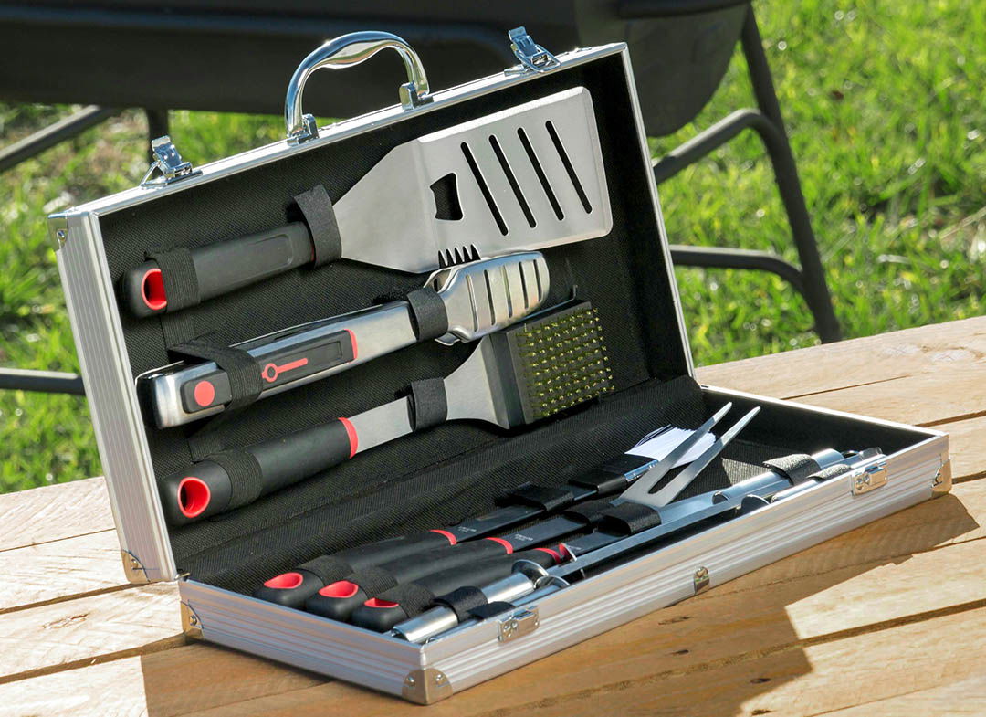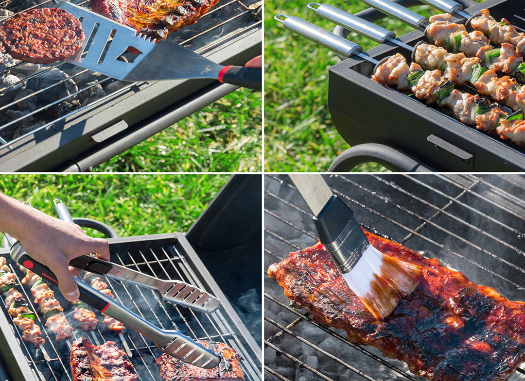 Incinge gratarul! Urmeaza o reteta de te lingi pe degete, iar tu ai arsenalul complet: o Set ustensile gratar cu servieta premium, cu tot ce trebuie ca sa perpelesti bine carnea, pestele sau legumele.