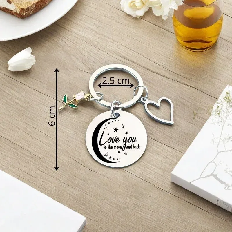 Acest breloc cu mesajul „Love you to the moon and back” este o declaratie subtila si sincera de iubire, perfecta pentru partenerul tau sau pentru cineva drag tie. Designul elegant si simbolurile atasate – inima, steaua si luna – transmit emotie si afectiune intr-un mod delicat, dar plin de semnificatie.