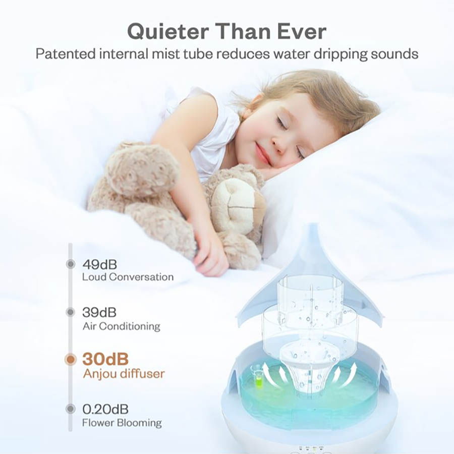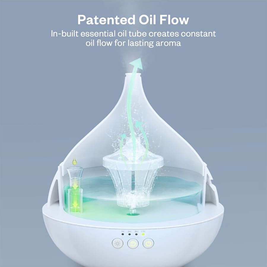 Cu 7 culori personalizabile, transforma apa si uleiurile esentiale intr-un abur foarte fin si parfumat.