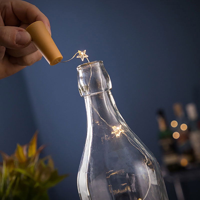 Aceste dopuri sunt putin mai speciale deoarece la baza lor se gaseste instalatia care poate transforma orice sticla draga de vin intr-o veioza hipsterita, foarte potrivita oricarui decor, de la barul din bucatarie, la masa cu bufet suedez de la party-ul de la ziua ta.