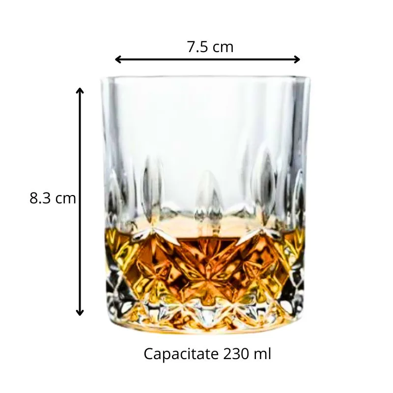 Paharul Whiskey Aurora Dream este epitomul elegantei si al sofisticarii, creat special pentru cei care apreciaza designul premium si functionalitatea impecabila. Fabricat din sticla de inalta calitate, acest pahar transparent impresioneaza prin claritatea sa si prin detaliile sculpturale care adauga un plus de rafinament. Cu dimensiuni de 8.3 x 7.5 x 6.5 cm si o capacitate de 230 ml, paharul este perfect pentru a savura un whisky pur, bourbon sau orice bautura spirtoasa de calitate.