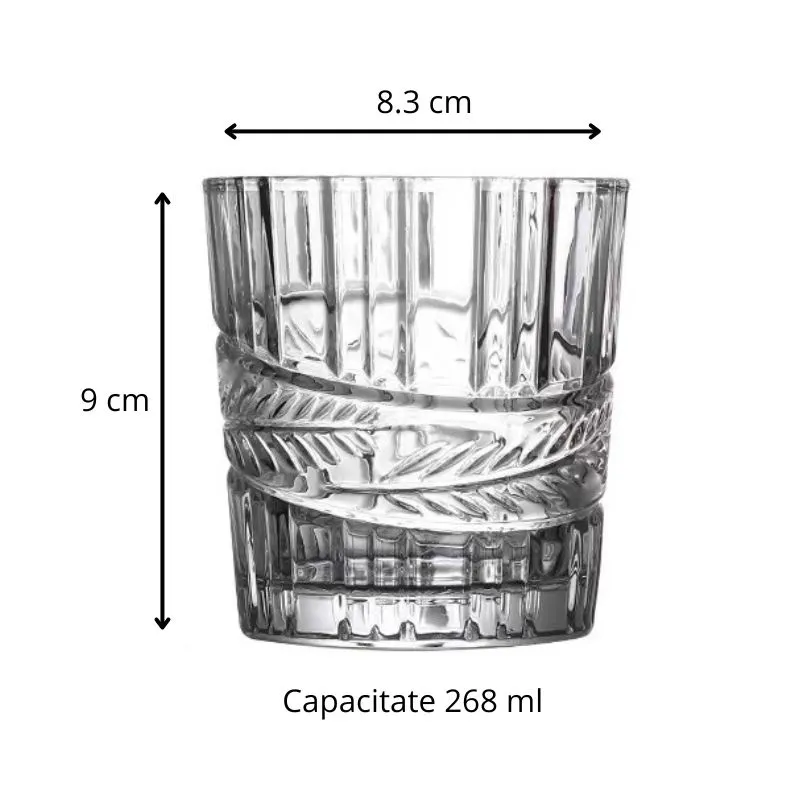 Utilizare: Paharul Whiskey Classical este ideal pentru a savura diverse tipuri de whiskey, bourbon, scotch sau alte bauturi spirtoase. Designul transparent si elegant nu doar ca imbunatateste experienta vizuala, dar si transforma fiecare inghititura intr-un moment special. Ideal pentru a fi utilizat in cadrul unor evenimente speciale, cine festive sau pur si simplu pentru a te relaxa acasa dupa o zi lunga. Usor de intretinut, acest pahar va deveni rapid un favorit in colectia ta de sticlarie.