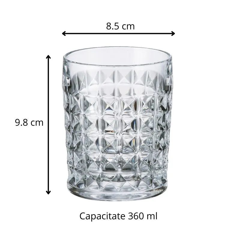 Paharul Whiskey Gentleman's Choice este esenta elegantei si a rafinamentului intr-un design compact si sofisticat. Realizat din sticla transparenta de cea mai buna calitate, acest pahar iti permite sa admiri culoarea si textura bauturii tale preferate. Cu dimensiuni de 9.2 x 7.8 x 8.5 cm si o capacitate generoasa de 360ml, acest pahar este ideal pentru a savura whiskey-ul, bourbon-ul sau orice alta bautura fina.