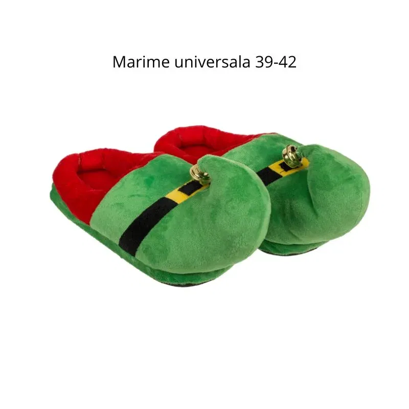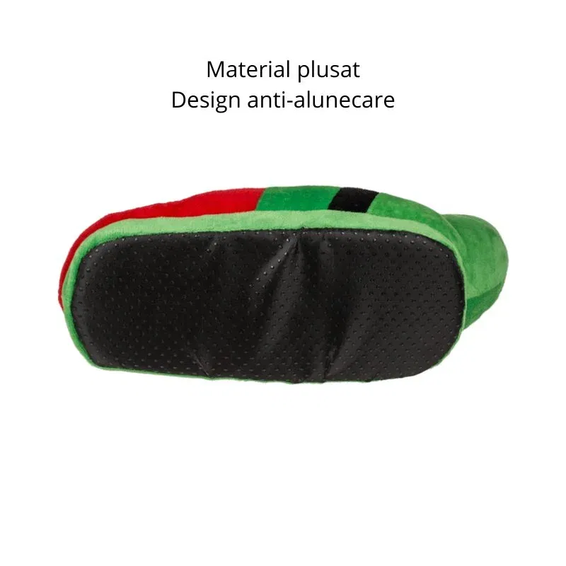 Papucii de casa Spiridus sunt creati special pentru cei care iubesc sarbatorile de iarna si vor sa simta magia Craciunului in orice moment al zilei. Realizati dintr-un material plusat de inalta calitate, acesti papuci sunt extrem de moi si confortabili, fiind ideali pentru serile relaxante petrecute acasa. Culorile verde si rosu, inspirate de costumele traditionale ale spiridusilor, adauga o nota vesela si festiva, in timp ce talpa anti-derapanta iti ofera siguranta si stabilitate pe orice suprafata.