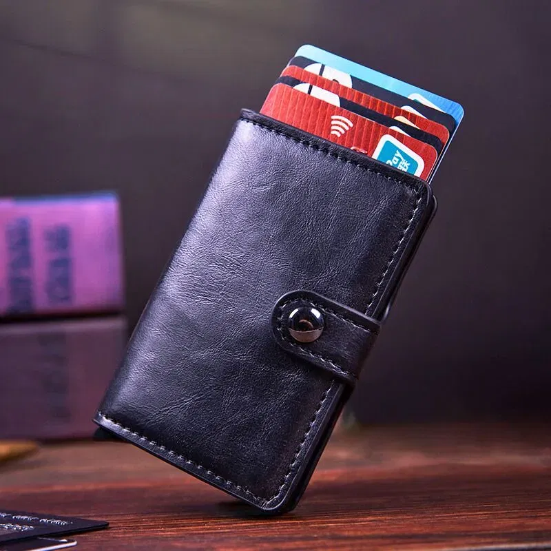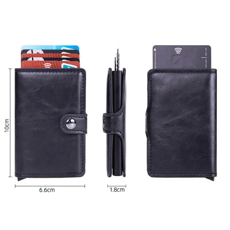 Utilizare: Acest portofel este ideal pentru a pastra in siguranta cardurile bancare, cardurile de identitate si banii. Designul RFID previne furtul electronic, facandu-l perfect pentru utilizarea zilnica si pentru calatorii. Slotul din aliaj de aluminiu ofera un acces rapid si usor la carduri, in timp ce pielea ecologica confera un aspect sofisticat.