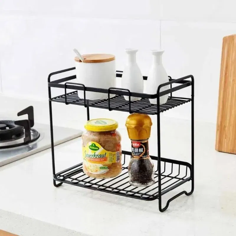 Designul sau minimalist si functional adauga un plus de stil oricarei bucatarii, in timp ce cele doua etaje ofera spatiu generos pentru organizare. Cu dimensiuni de 30 cm inaltime, 29.5 cm latime si 25 cm adancime, raftul se potriveste perfect pe blatul de bucatarie sau in dulapuri, maximizand spatiul disponibil.