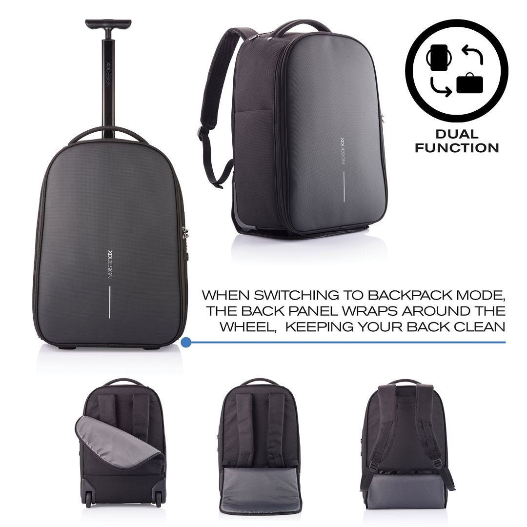 Fie ca azi nu esti in deplinatatea fortelor, fie ca spatele tau este epuizat dupa o zi de sala, poti utiliza acest rucsac antifurt Bobby Trolley in doua moduri - obisnuit si troller. Si nici vorba de griji si cand vine vorba de design-ul cool si minimalist pe care-l poti asorta cu orice tinuta, si orice destinatie.