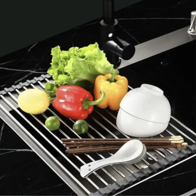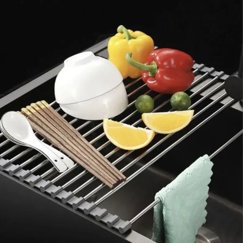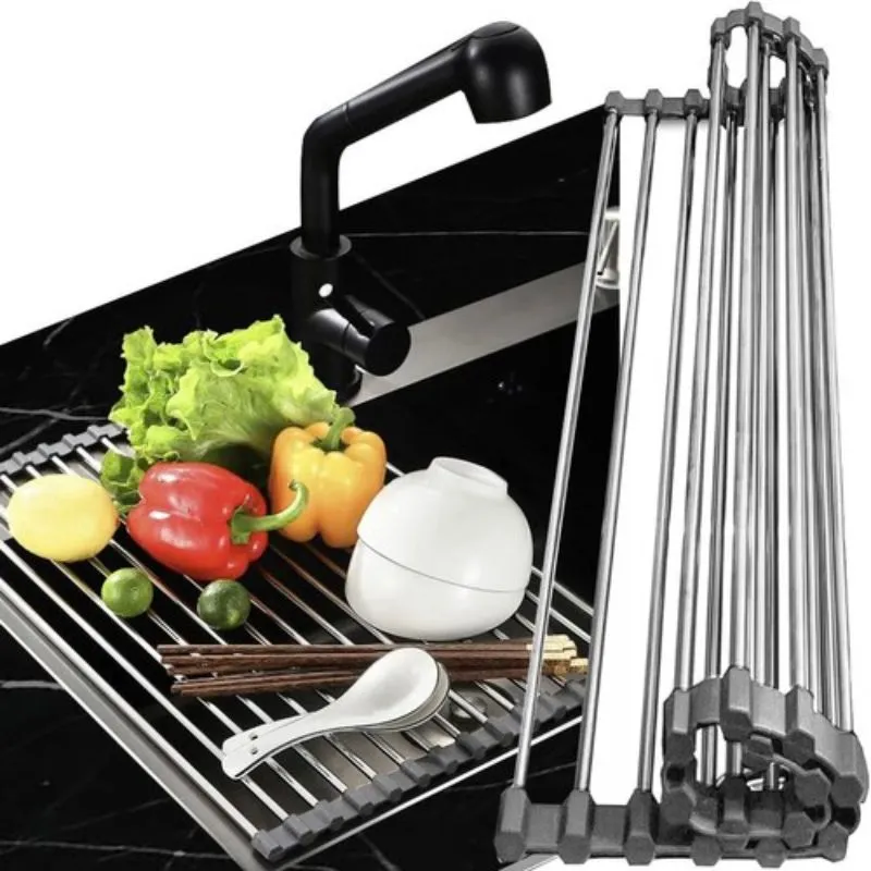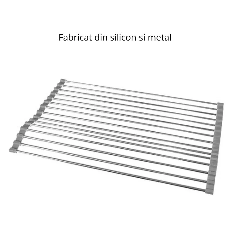 Transforma-ti experienta in bucatarie cu scurgatorul nostru pliabil pentru vase, un accesoriu esential pentru orice gospodarie moderna. Fabricat dintr-o combinatie robusta de silicon si metal, acest scurgator nu doar ca rezista in timp, dar si arata elegant pe orice chiuveta. Cu un design pliabil ingenios, economisesti spatiu pretios atunci cand nu este utilizat. Pur si simplu deschide-l peste chiuveta pentru a scurge vasele proaspat spalate, legumele sau fructele. Distanta optima intre treptele metalice asigura o scurgere rapida si eficienta, in timp ce culorile gri si argintiu adauga un plus de stil bucatariei tale.