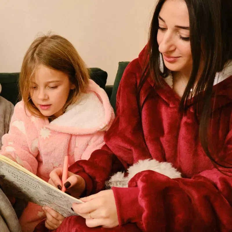 Setul nostru Mama si Fiica nu este doar despre confort si caldura, ci si despre construirea si consolidarea legaturii dintre mama si fiica. Acest cadou special va ofera o modalitate minunata de a petrece timp de calitate impreuna, impartind momente amuzante si emotionante. Imaginati-va cum veti sta impreuna pe canapea, cu paturile cu maneci, sa vorbiti, sa radeti sau sa va bucurati de un film preferat.
