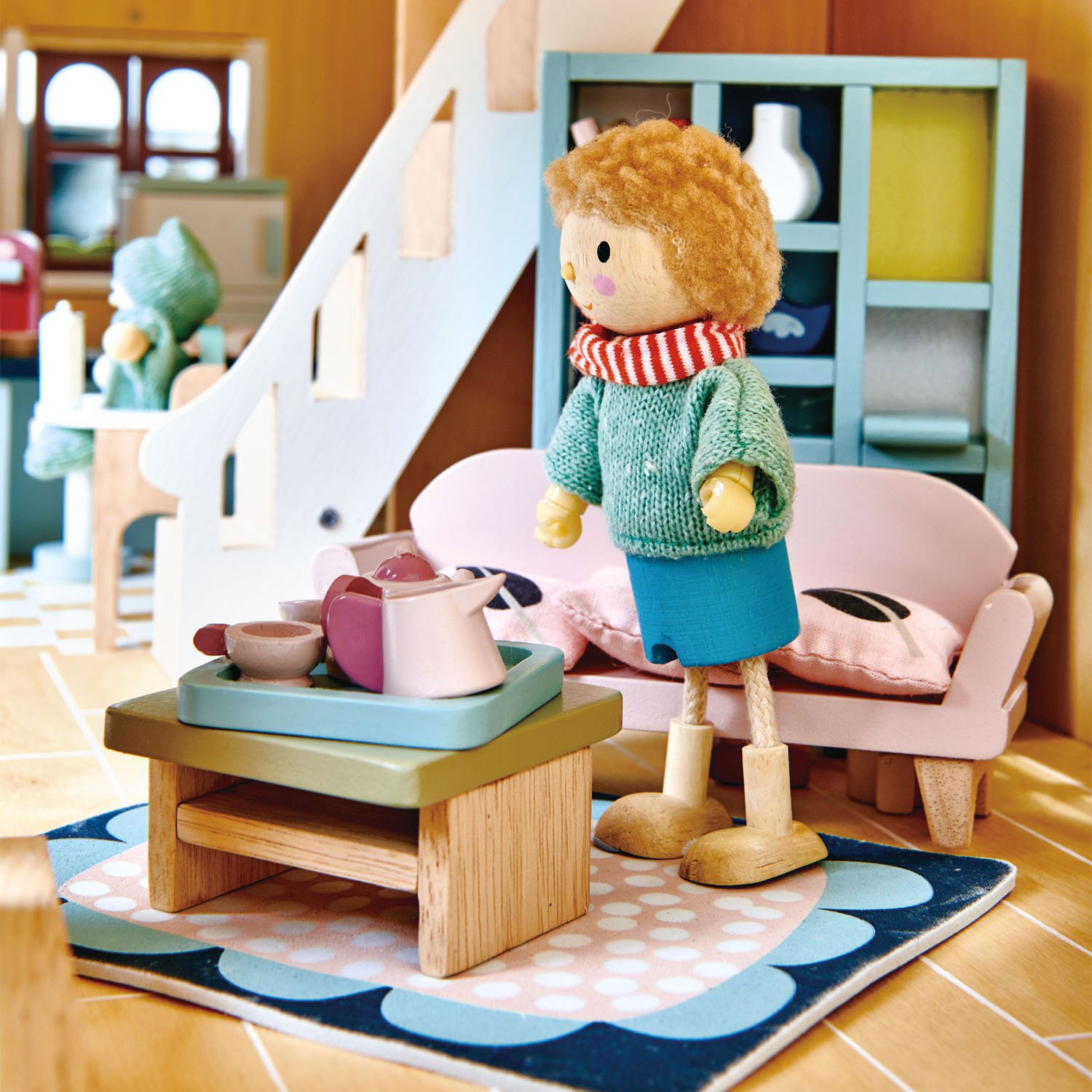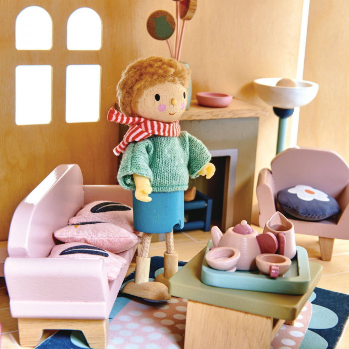 Set mobilier cameră de zi Dovetail, din lemn premium. O sufragerie modernă, cu canapea și 3 perne tipărite, masă de cafea, lampă standard, șemineu cu bușteni, vază cu flori, televizor cu suport, fotoliu cu pernă tipărită, covor tipărit, bibliotecă cu accesorii și tavă pentru ceai. Potrivit pentru toate casele de păpuși din lemn, la scară până la 1:12. Mini-jucăriile asemănătoare vieții pot ajuta copiii să-și creeze o poveste proprie. Alimentează creativitatea și imaginația pentru dezvoltarea copiilor de vârste fragede. Imaginația favorizează dezvoltarea cognitivă și socială, totodoată aceasta poate aprinde în mintea copiilor curiozitatea despre lumea înconjurătoare. Promovarea distracției sănătoase și pozitive - Situațiile din viața reală îi inspiră pe copii să gândească creativ în timpul copilăriei și îi determină să interacționeze mai ușor cu ceilalți, în același timp, construind încredere și prietenie. De asemenea, le consolidează limbajul, emoțiile și abilitățile motrice fine. O metodă bună de dezvoltare a procesului de gândire - Copiii vor învăța să gândească pas cu pas și să cultive bune obiceiuri organizaționale în timp ce îndeplinesc sarcini. Încurajează interacțiunea cu părinții și frații pentru a rezolva problemele și a-și îndeplini obiectivele. Recomandat copiilor cu vârsta de peste 3 ani. JOCURILE PREMIUM CREEAZĂ UN MEDIU DE JOC NATURAL - TLT folosește cunoștințele și creativitatea pentru a aduce energie și emoție jucăriilor realizate din lemn premium. Din dorința de a proteja pământul, folosesc doar lemn ecologic. Realizat dintr-o resursă regenerabilă - Vă doriți ce-i mai bun pentru copilul dumneavoastră și această jucărie chiar acest lucru livrează. Fabricat din lemn de arbore din cauciuc regenerabil, aceasta este o jucărie ecologică și sigură, care nu conține substanțe chimice, iar pentru fiecare copac care devine o jucărie frumoasă, un altul este replantat. Vopseaua folosită este pe bază de apă, non-toxică, pentru a păstra copii în siguranță. ÎNDEPLINEȘTE TOATE STANDARDELE DE SIGURANȚĂ ȘI CALITATE EUROPENE - Calitatea și siguranța sunt cele mai importante părți ale proiectelor de la Tender Leaf Toy. Fiecare jucărie este făcută cu grijă pentru bunăstarea și educația copiilor. Proiectat de echipa TLT din Marea Britanie pentru a satisface toate standardele europene. Fabricat în fabrica TLT din Indonezia. Despre Tender Leaf Toys: Tender Leaf Toys creează jucării netede, frumos proiectate, care promovează învățarea prin joc. Tradiționali în concepție, dar contemporani în design, toate produsele sunt realizate cu un accent distinct pe meșteșug și calitate.