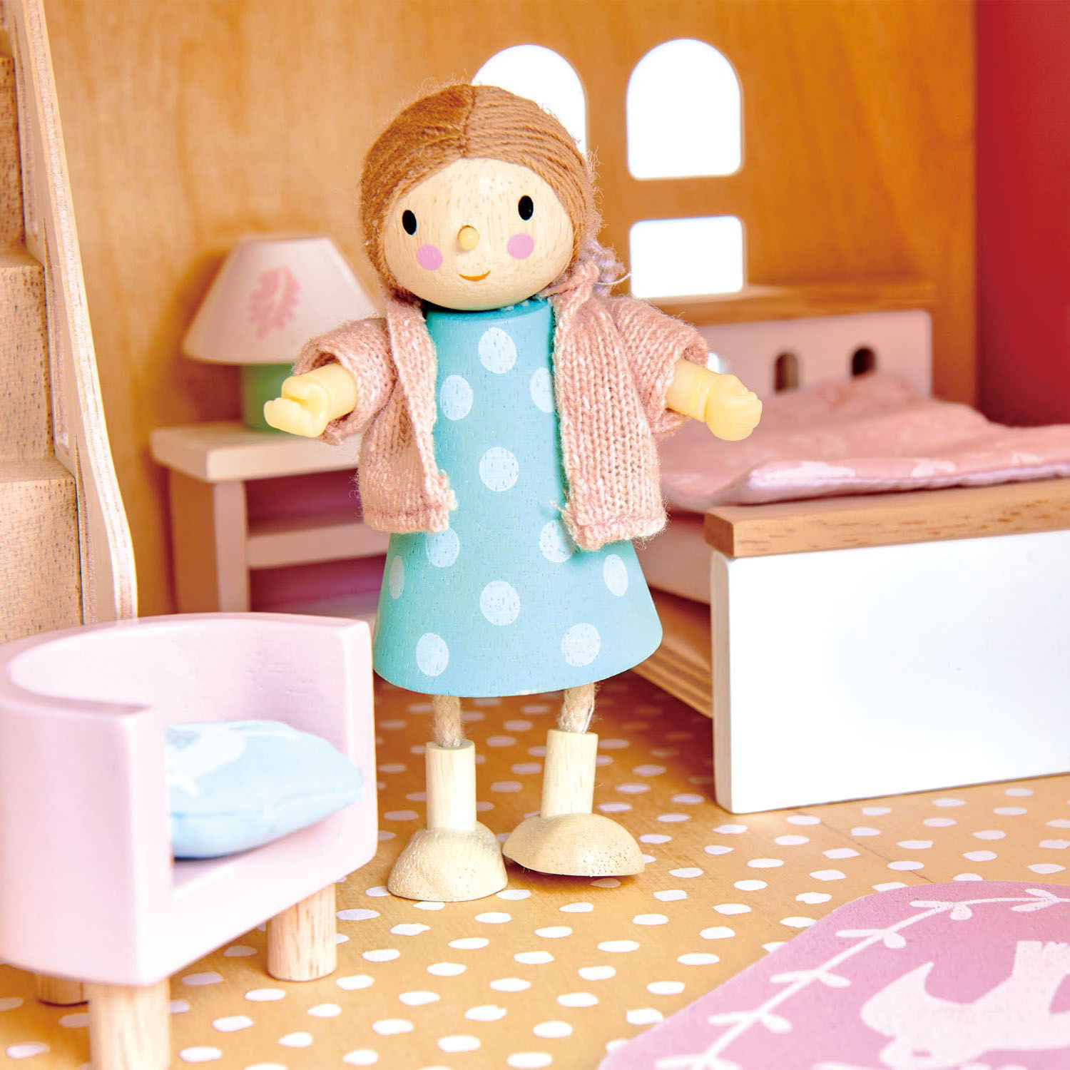 Set mobilier dormitor Dovetail, din lemn premium - cu 15 piese, echipamente și accesorii complete. Acest set include pat dublu cu lenjerie de pat, dulap, noptieră, lampă, dressing, taburet, covor tipărit, 3 umerașe și scaun cu o pernă imprimată. Potrivit pentru toate casele de păpuși din lemn, la scară până la 1:12. Mini-jucăriile asemănătoare vieții pot ajuta copiii să-și creeze o poveste proprie. Alimentează creativitatea și imaginația pentru dezvoltarea copiilor de vârste fragede. Imaginația favorizează dezvoltarea cognitivă și socială, totodoată aceasta poate aprinde în mintea copiilor curiozitatea despre lumea înconjurătoare.