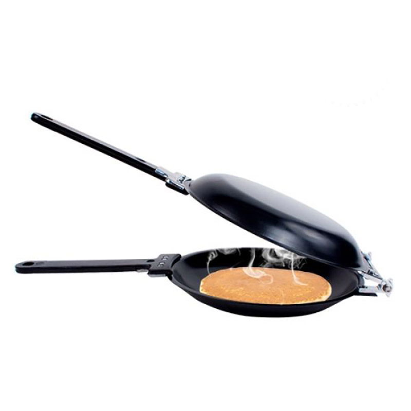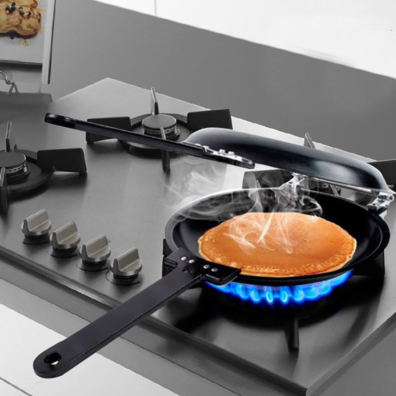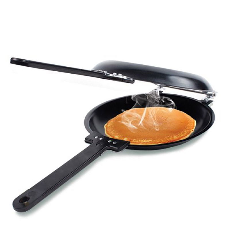 Si daca iti spunem ca acum ai o solutie si mai rapida de a prepara clatite perfecte, o sa fii si mai curios. Tigaie clatite americane te ajuta sa-ti perpelesti clatitele uniform - si pe o parte, si pe alta - in 2 timpi si 3 miscari. Nu mai trebuie sa risti si sa spui un Doamne ajuta cand intorci clatitele cu miscare in aer de flip-flap. Aceasta tigaie dubla trebuie doar intoarsa si gata.