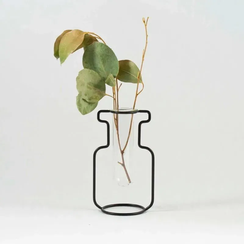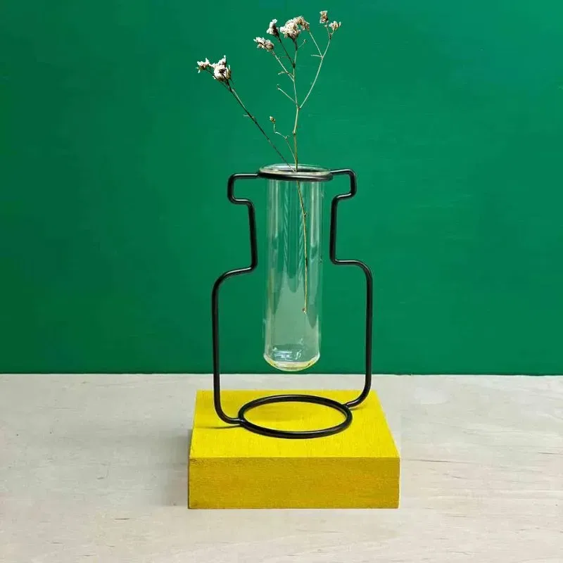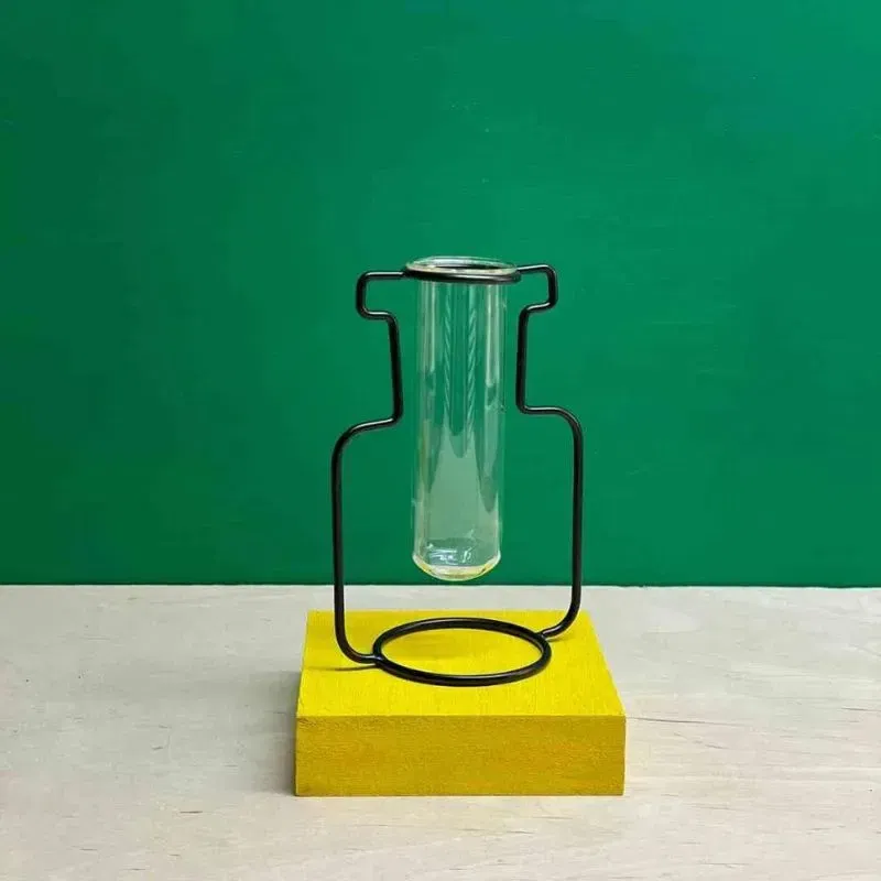 Vaza cu Suport Metalic, Plante Fericite este perfecta pentru cei care doresc sa combine utilitatea cu estetica. Realizata din sticla de inalta calitate si cu un suport metalic robust, aceasta vaza este ideala pentru propagarea plantelor si aduce un plus de eleganta oricarui spatiu.