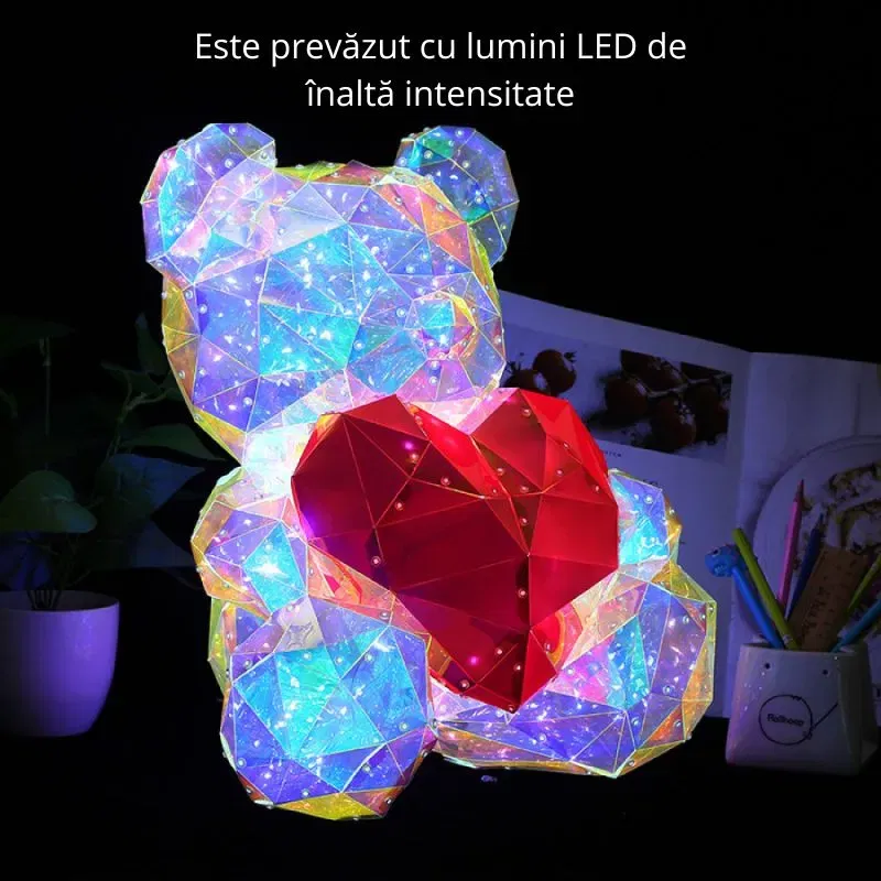 Ursuletul indragostit cu lumini poate sterge absolut orice urma de tristete de pe fata oricui datorita aspectului absolut adorabil. Spectrul larg de culori vii este perfect pentru absolut orice ocazie, chiar si pentru petrecerea nou-nascutului sau de Craciun.