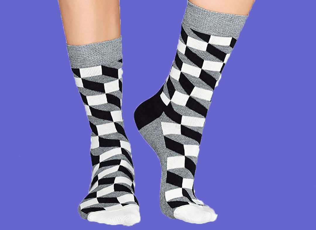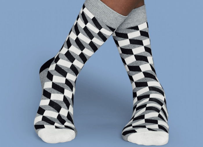 Pentru outfituri iesite din comun! Realizate din fibre de bumbac pieptanat, cunoscute ca fiind cele mai rezistente, sosetele monocrome optice sunt accesoriul perfect pentru a iti completa tinuta. Fie ca vorbim despre un outfit casual, fie ca vrei sa iesi din tipare, modelul cu dreptunghiuri in nuante de negru, alb si gri se va potrivi perfect si va transmite indrazneala necesara unei tinute fashion.