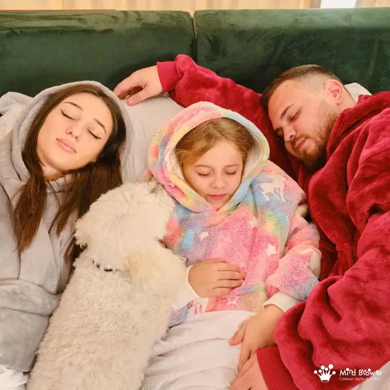 Ofera-i cadou acest hanorac tip patura si ai sa o stii in confort chiar si in zilele reci de iarna cand nu vrei sa abuzezi de caldura de in casa.