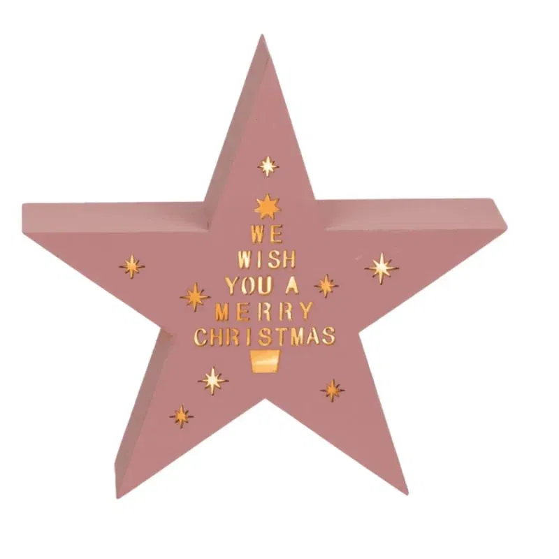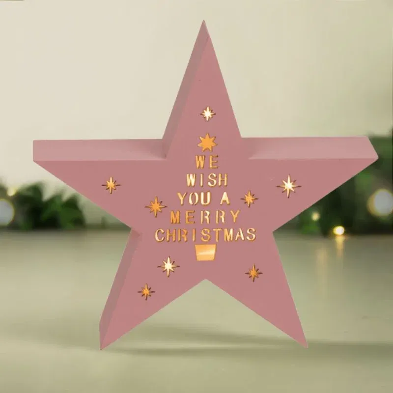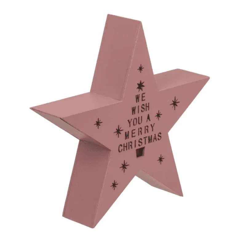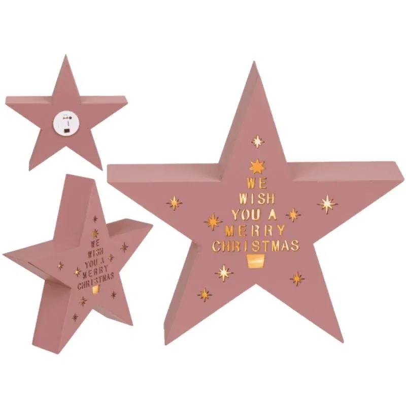 Transforma decorul de Craciun intr-un adevarat spectacol de lumini cu aceasta stea eleganta cu LED-uri. Realizata din lemn de calitate superioara, steaua are un design modern si o culoare roz subtila, care adauga o nota de rafinament oricarui spatiu. Cu dimensiuni compacte de 18 x 4 x 17 cm, este perfecta pentru a fi amplasata pe mese, rafturi, pervazuri sau chiar pe seminee.