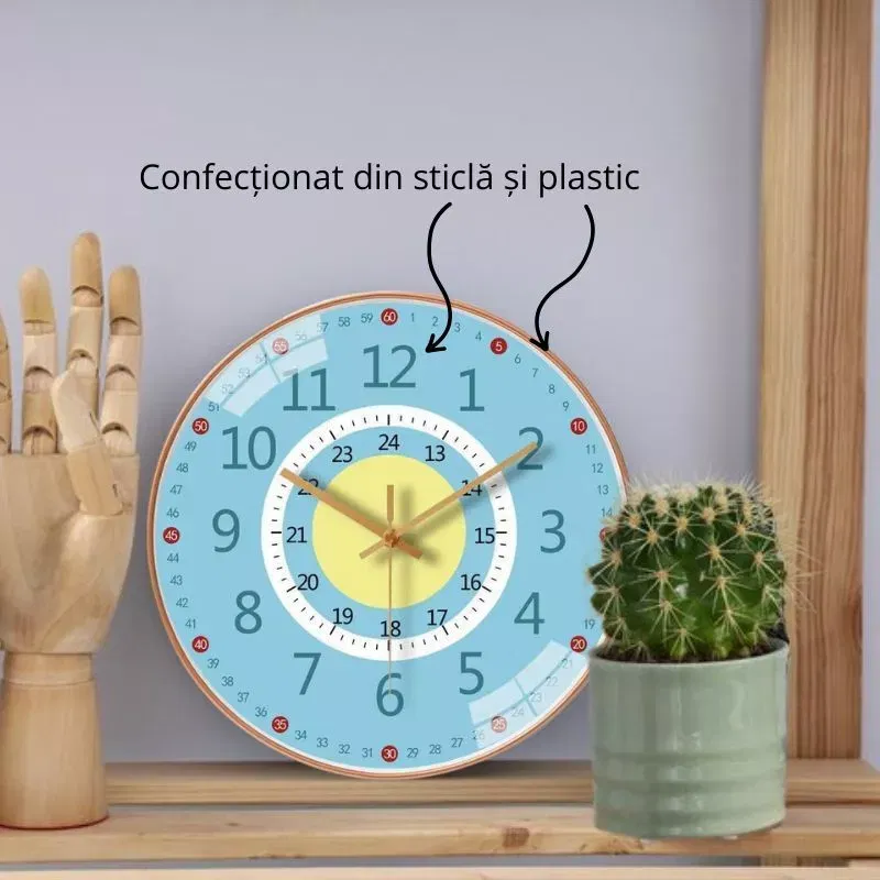 Utilizare: Deja l-ai desfacut? In spate, ceas de perete pentru copii Happy Time este prevazut cu un compartiment special pentru inzestrarea cu o baterie AAA. Adaug-o, seteaza ceasul la ora actuala invartind rotita din imediata vecinatate si amplaseaza-l pe peretele cel mai atractiv din camera copilului.