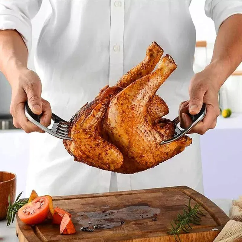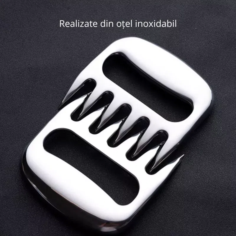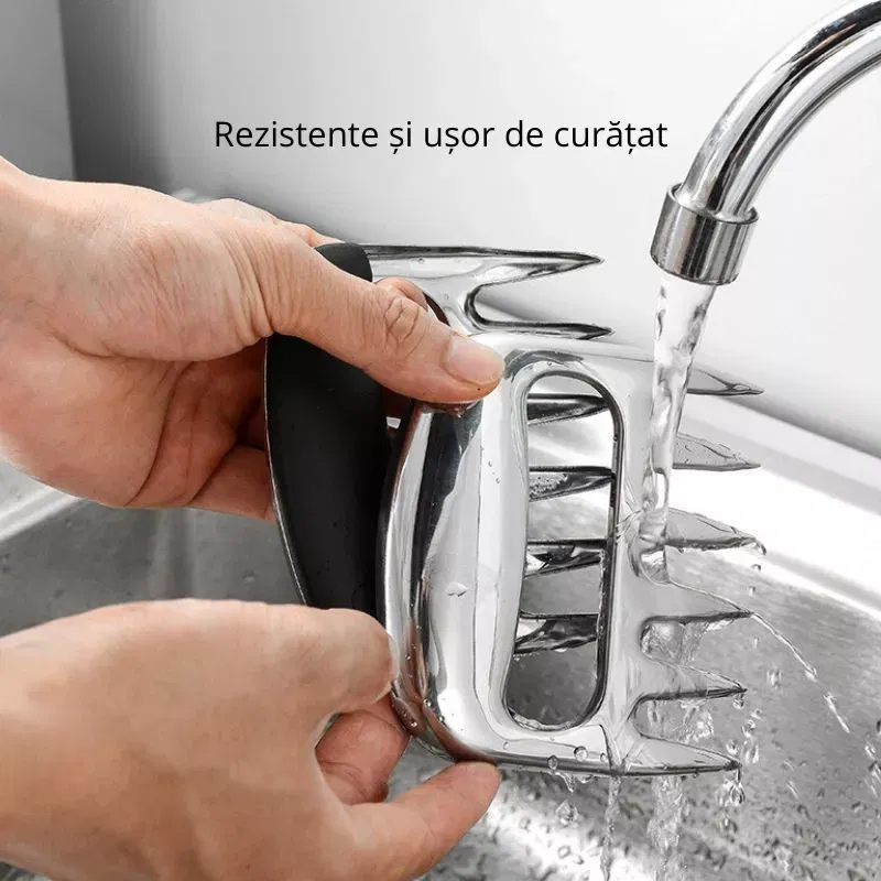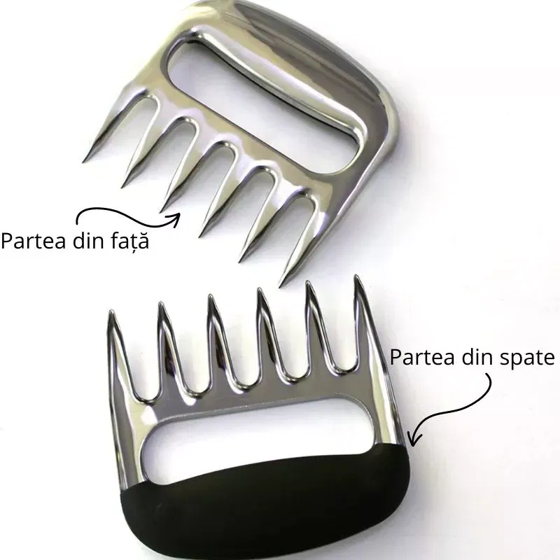 Utilizare: Pentru a utiliza aceste Gheare de urs, din otel inoxidabil, tot ce trebuie sa faci este sa tii una de maner si sa o infigi in carne spre exemplu, asa cum ai proceda cu o furculita. Gheara iti va oferi stabilitate si, avand in vedere dimensiunile acesteia, vei putea fixa chiar si bucatile mari de carne, pe care de obicei trebuia sa le tai in doua sau trei inainte de a le portiona pentru servire. Pentru amestecarea salatei, utilizeaza ambele gheare in acelasi timp, ca si cand ar fi clesti pentru salata. Ofera acest cadou amuzant oricui este pasionat de bucatarie.