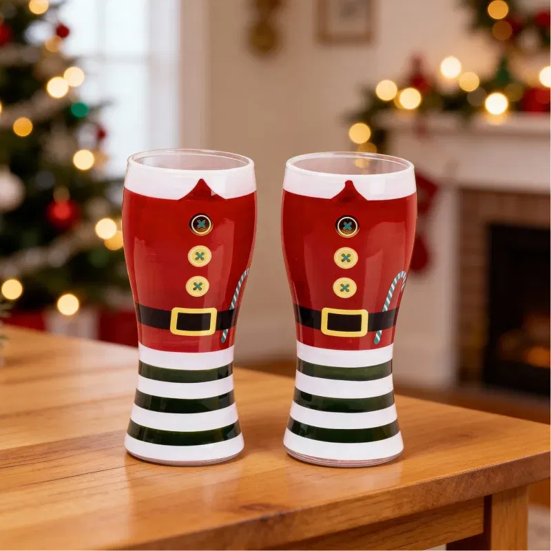 Adauga un strop de magie si voie buna la mesele festive cu acest set de 2 pahare de bere decorate cu motivele costumului lui Mos Craciun. Cu o capacitate generoasa de 460 ml, aceste pahare sunt ideale pentru a-ti savura bauturile preferate intr-un mod cu totul special. Fiecare pahar este decorat cu designul iconic al costumului lui Mos Craciun, cu detalii festive care aduc zambete si transforma orice ocazie intr-o sarbatoare.