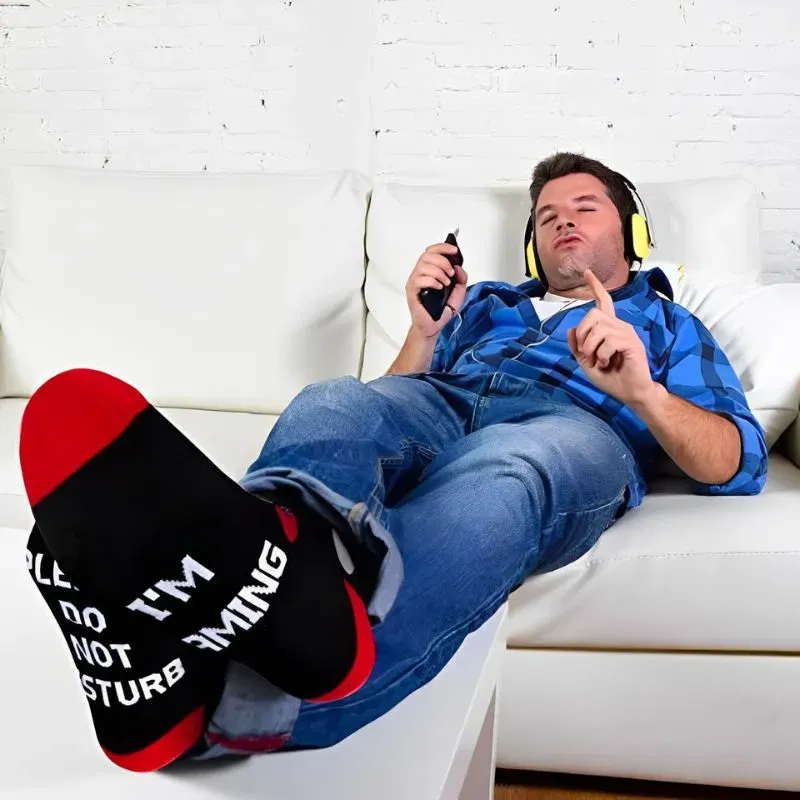 Stii momentul acela cand obosesti doar incercand sa explici ca faci lucruri importante si nu trebuie sa fii deranjat? Cu sosete amuzante pentru gameri, Please do not disturb, nici nu mai e nevoie sa te distragi de la activitatile tale preferate.