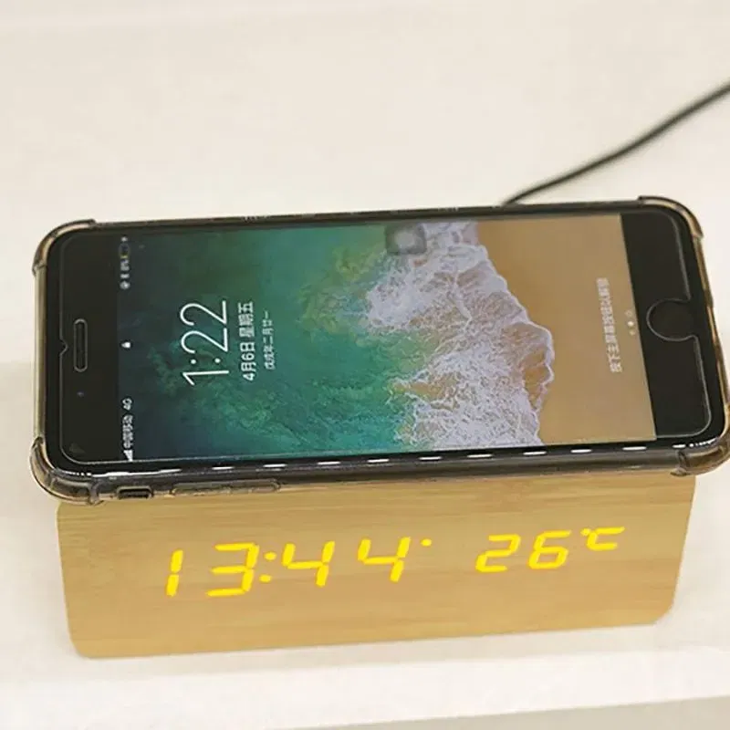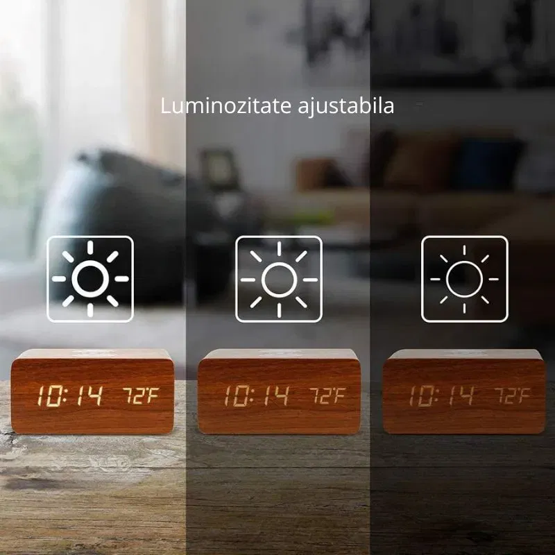 Ceasul LED cu incarcare wireless nu este doar un ceas obisnuit de pe noptiera. Este acel gadget inovator care combina tehnologia si designul minimalist intr-un obiect indispensabil. Carcasa sa cu aspect din lemn confera o nota naturala si calda, in timp ce ecranul cu LED ofera o afisare clara si personalizabila. Ai trei moduri de alarma care iti garanteaza ca nu vei mai dormi peste ora planificata, iar functia de afisare a temperaturii adauga un plus de confort in casa ta. Cu functia de incarcare wireless integrata, acest ceas devine si un incarcator rapid pentru telefonul tau mobil. Simplu de utilizat si estetic, acest produs este un must-have pentru oricine iubeste tehnologia si eleganta in acelasi timp.