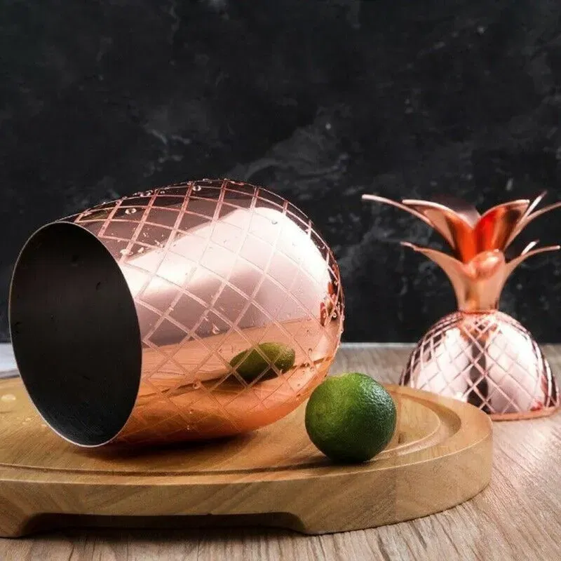 Utilizare: Paharul de Cocktail Ananas, Copper este perfect pentru a savura bauturile tale preferate intr-un mod elegant si sofisticat. Materialul din otel inoxidabil asigura durabilitate si o utilizare indelungata, iar designul unic de ananas adauga un plus de exotism fiecarei ocazii. Dimensiunile ergonomice il fac usor de manevrat si de curatat, fiind ideal pentru petreceri, evenimente speciale sau momente de relaxare acasa. Indiferent daca il folosesti pentru cocktailuri, sucuri sau alte bauturi, acest pahar aduce un plus de stil si rafinament fiecarei prezentari, transformand orice moment intr-o experienta de lux.