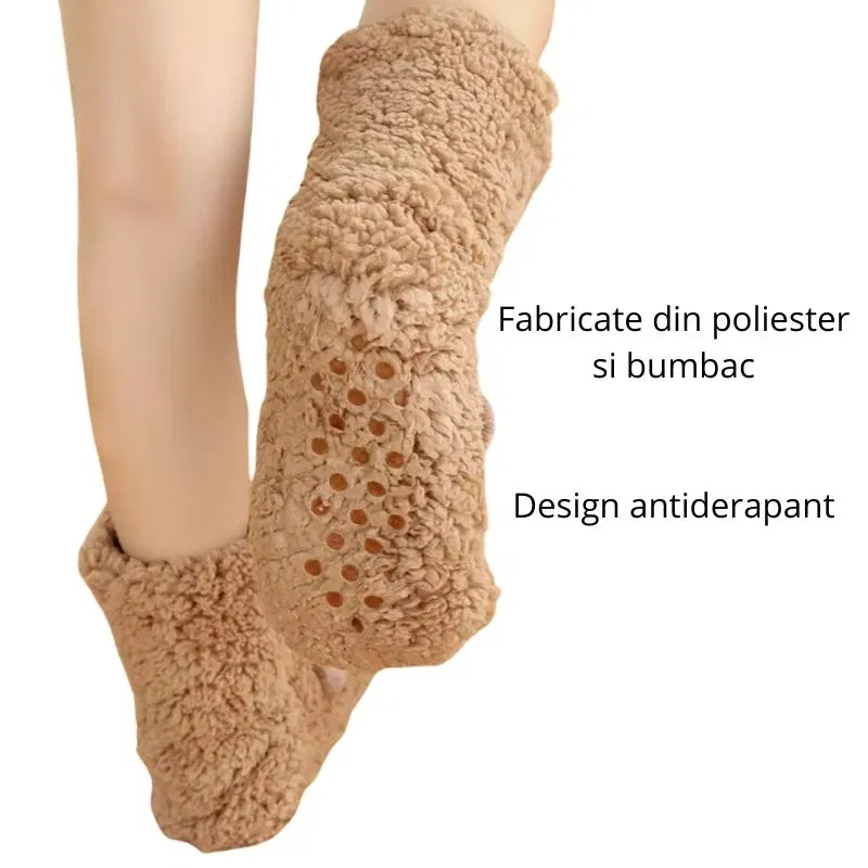 Sosetele amuzante Cute Bear sunt concepute pentru a mentine picioarele calde si confortabile chiar si in cele mai reci zile. Fabricate dintr-o combinatie premium de poliester si bumbac moale, ele ofera o atingere catifelata si o senzatie placuta la purtare, asigurand confort de lunga durata. Interiorul gros si pufos mentine caldura, iar textura respirabila permite pielii sa ramana uscata si relaxata.
