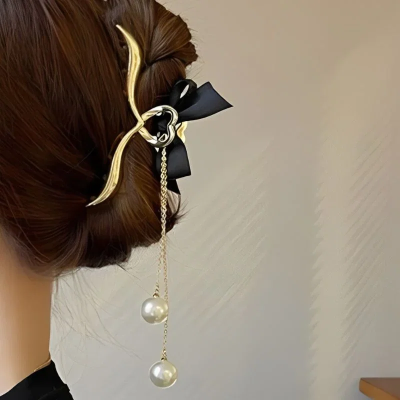 Adauga un plus de rafinament coafurii tale cu aceasta agrafa de par de inalta calitate, decorata cu fundita si perle elegante decorative.